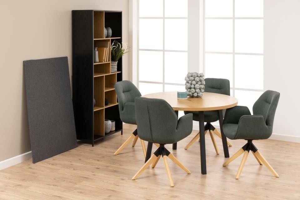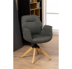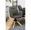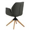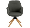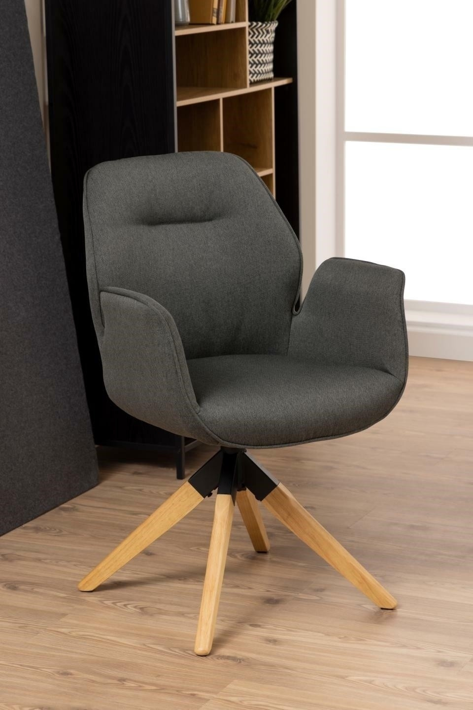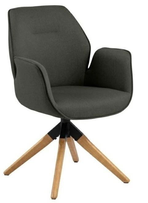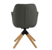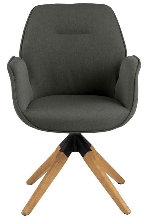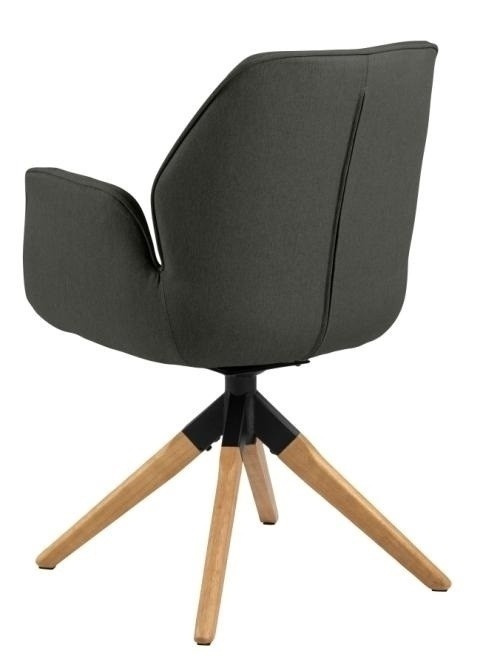Židle ve skandinávském stylu Aura je mimořádně efektní a pohodlné sedadlo. Odpovídajícím způsobem tvarované sedadlo bylo potaženo měkkou čalounickou pěnou a látkou Town dark grey33. Tkanina židle je snadno udržovatelná v čistotě. Teplý odstín šedé způsobí, že interiér jídelny nebo obývacího pokoje bude teplý a útulný. Područky v optimální výšce byly vytvarovány směrem ven, aby zvýšily pohodlí při sezení. Základem židle jsou čtyři nohy z masivního olejovaného kaučukového dřeva.. Nohy židle vycházejí z jednoho společného bodu a rozšiřují se poměrně široce, aby zaručily stabilitu. Sedák židle je otočný. Tato funkce je díky černému, kovovému mechanismu, který kromě funkce otáčení také spojuje židle se sedadlem. Rozměry kartonu: 77x42x62cm Max. množství kusů v kartonu: 1 Hmotnost: 12 kg