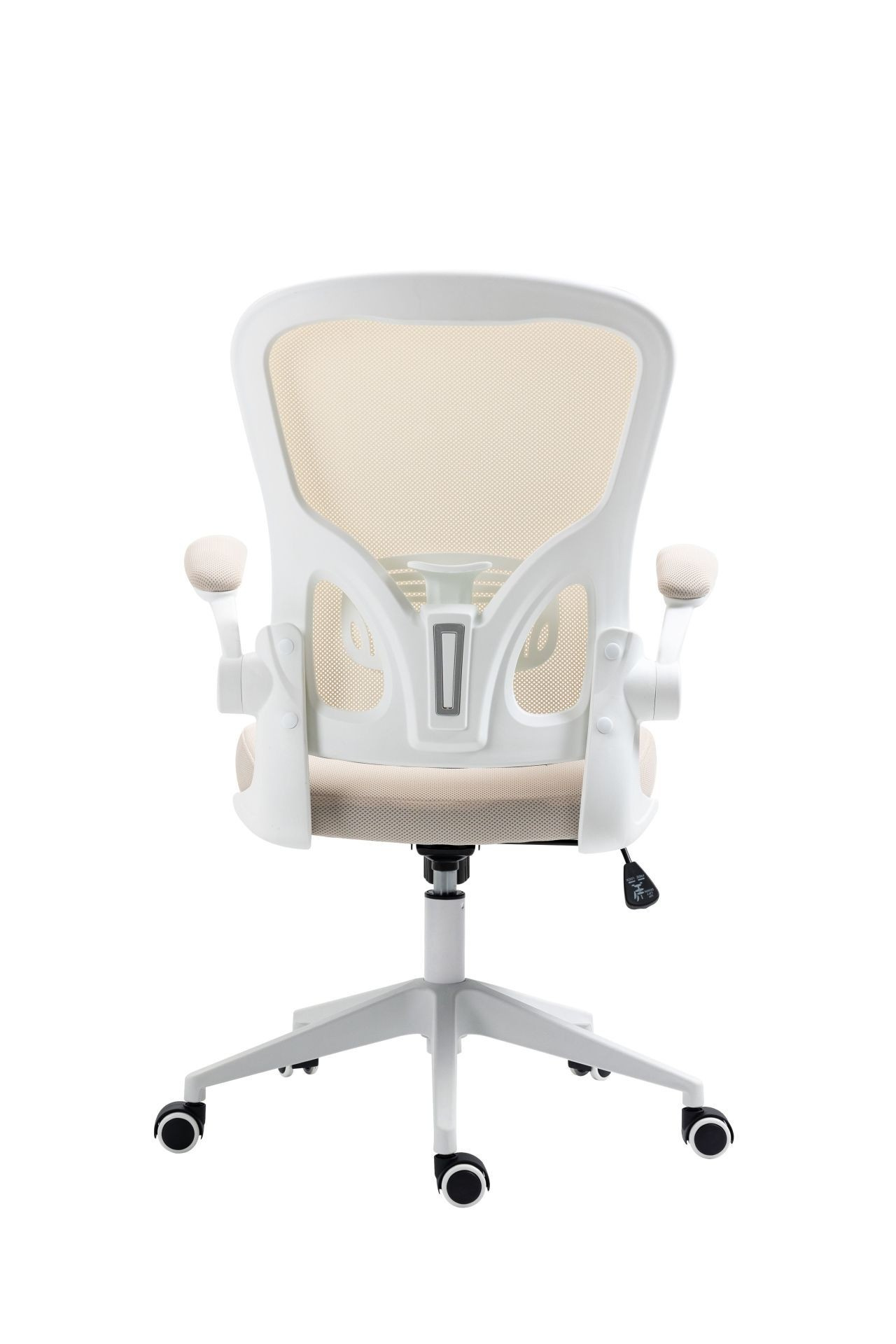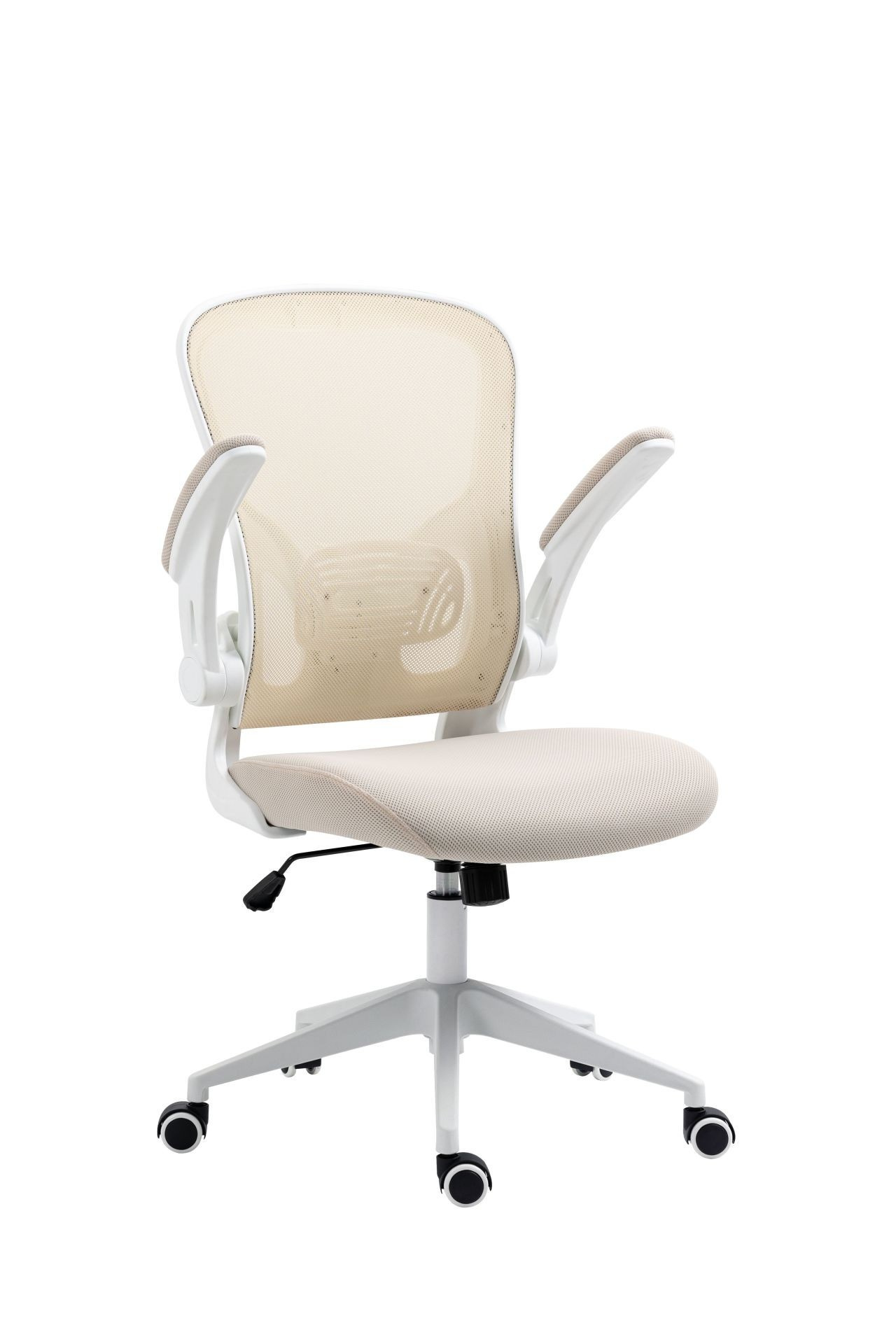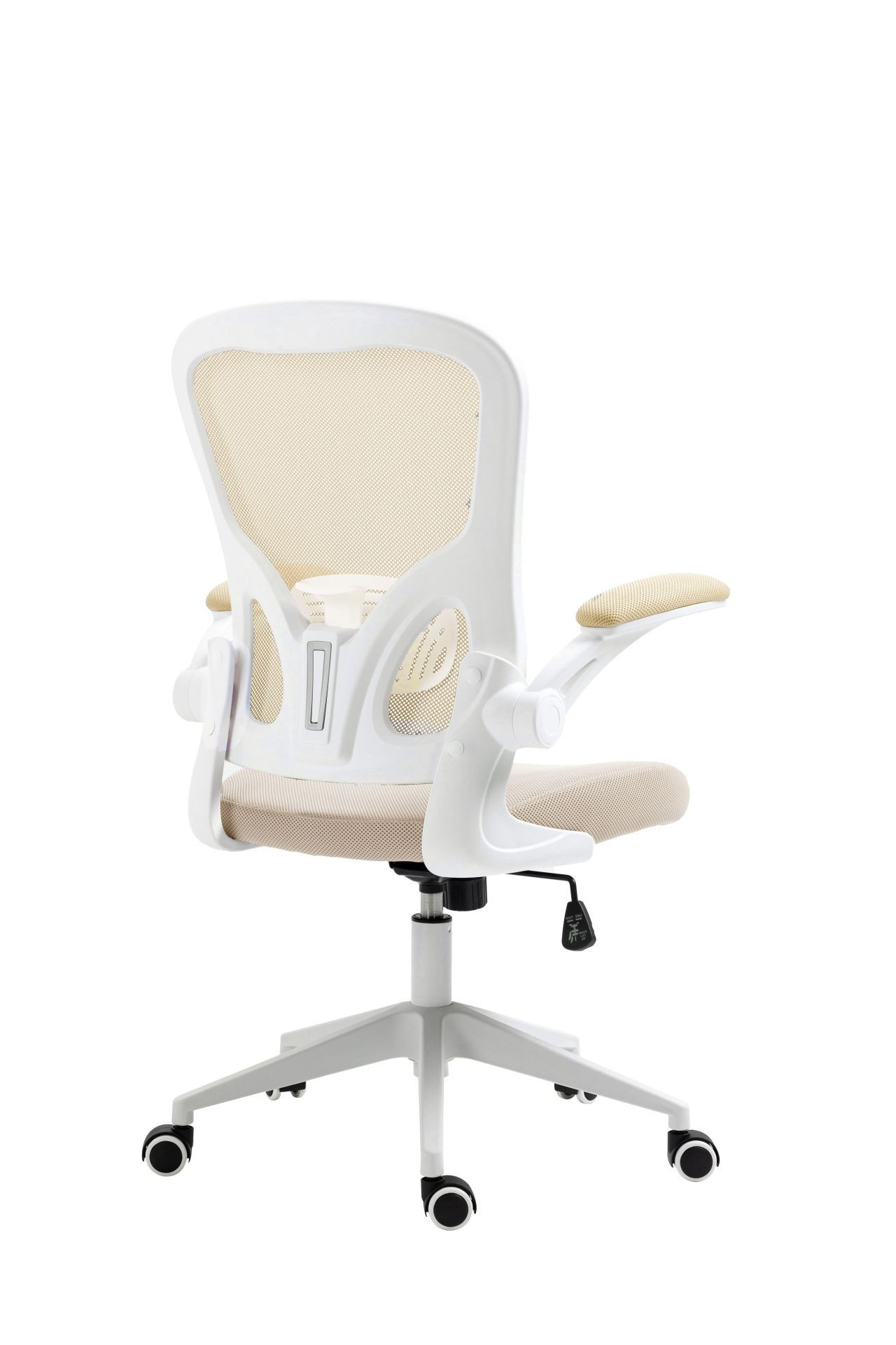 Rozměry: - celková šířka: 64 cm - šířka sedáku: 50 cm - hloubka sedáku: 44 cm - šířka opěradla: 50 cm - výška opěradla: 55 cm - celková výška: 96-110 cm - výška sedáku: 45-55 cm - výška područek: 69-79 cm Materiál: - čalounění: membránová tkanina + síťovina - základna a kolečka: PP plast Barva: - sedák + opěradlo: béžová - základna + područky: bílá Další: - mechanismus TILT - zvedací (skládací) područky