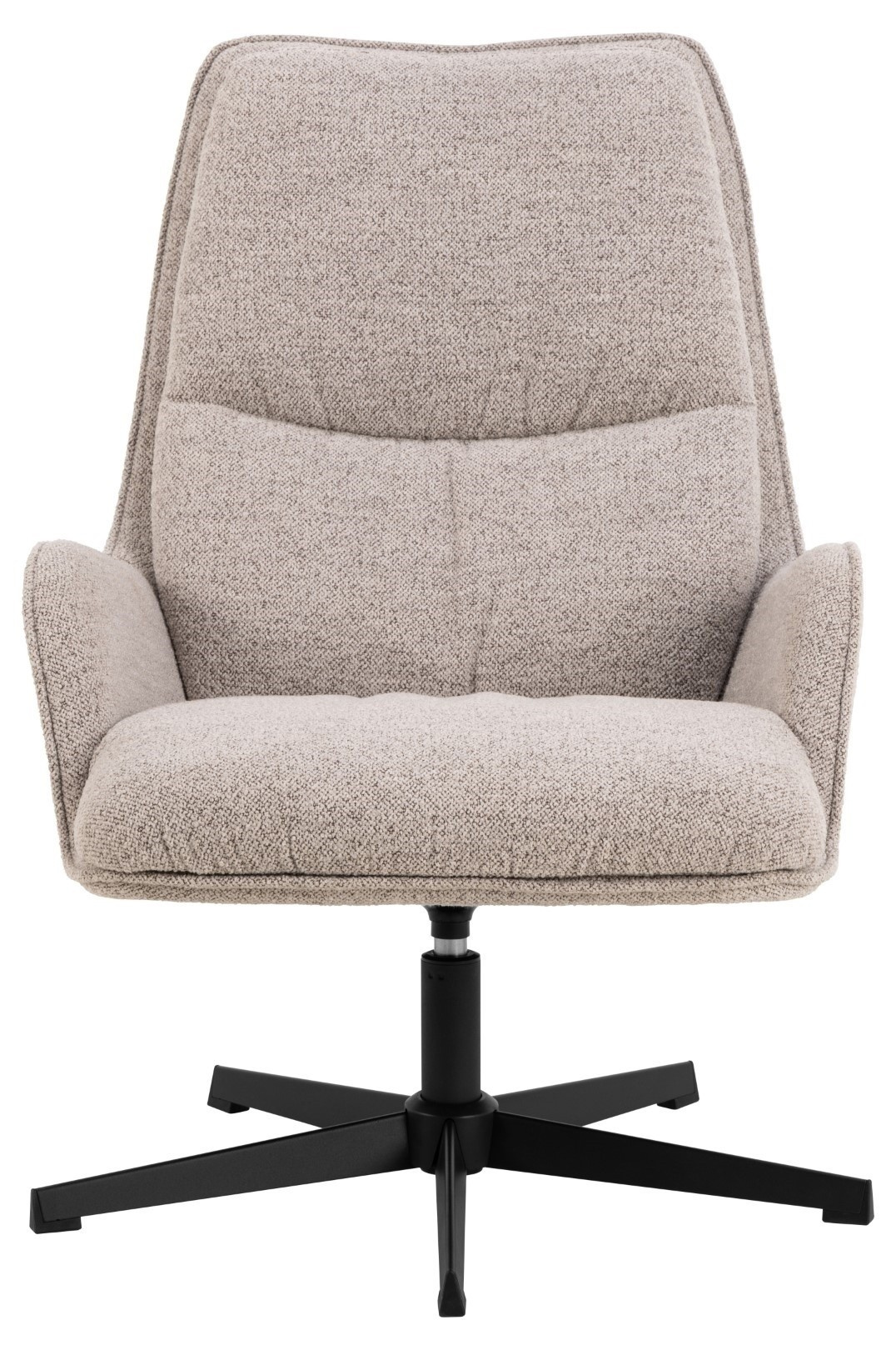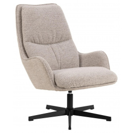 Křeslo Bosley je nábytek se široce otevřenými područkami, které zvou k chvíli odpočinku. Lehce profilované sedadlo je potaženo béžovou látkou připomínající bouclé, což zajišťuje nejen smyslové zážitky, ale také pohodlí a oporu. Umístěný na 5hvězdičkové otočné základně z černé oceli, křeslo vyzařuje moderní atmosféru, která bude dominovat v našem obývacím pokoji. Certifikát FSC Max. zatížení 110 kg Výška opěradla 60 cm Šířka sedáku 60 cm Hloubka sedáku 48 cm Výška područky od podlahy 50 cm Šířka područky 10 cm Hloubka područky 28 cm Výška područky 19 cm