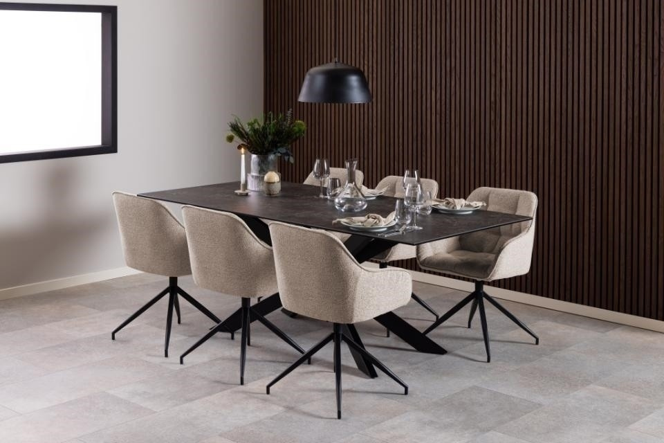Židle do jídelny Brooke s područkami a potažená látkou Monza béžová 60 je pohodlný nábytek na čtyřramenné základně. Nohy židle jsou vyrobeny z matné, černé oceli lakované práškovou barvou. Zdůrazněte charakter jídelny pomocí pohodlné, béžové židle s područkami. Dominantním prvkem této židle je bezchybná silueta a profilované sedadlo. Čalouněné sedadlo látkou bouclé je příjemné jak pro sezení během jídla, tak i pro delší sezení např. u stolu. Přidáním prošívání získává židle mimořádně módní vzhled. Výška opěradla: 37 cm Šířka sedáku: 41 cm Hloubka sedáku: 40,5 cm Výška područek: od podlahy: 63 cm, od sedáku: 19 cm Šířka područek: 4 cm Hloubka područek: 35 cm Rozměry. karton: 57x54x51cm Váha: 9kg