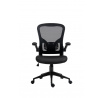 Rozměry: - celková šířka: 64 cm - šířka sedáku: 50 cm - hloubka sedáku: 44 cm - šířka opěradla: 50 cm - výška opěradla: 55 cm - celková výška: 96-110 cm - výška sedáku: 45-55 cm - výška područek: 69-79 cm Materiál: - čalounění: membránová tkanina + síťovina - základna a kolečka: PP plast Barva: - sedák + opěradlo: černá - základna + područky: černá Ostatní: - mechanismus TILT - zvedací (skládací) područky
