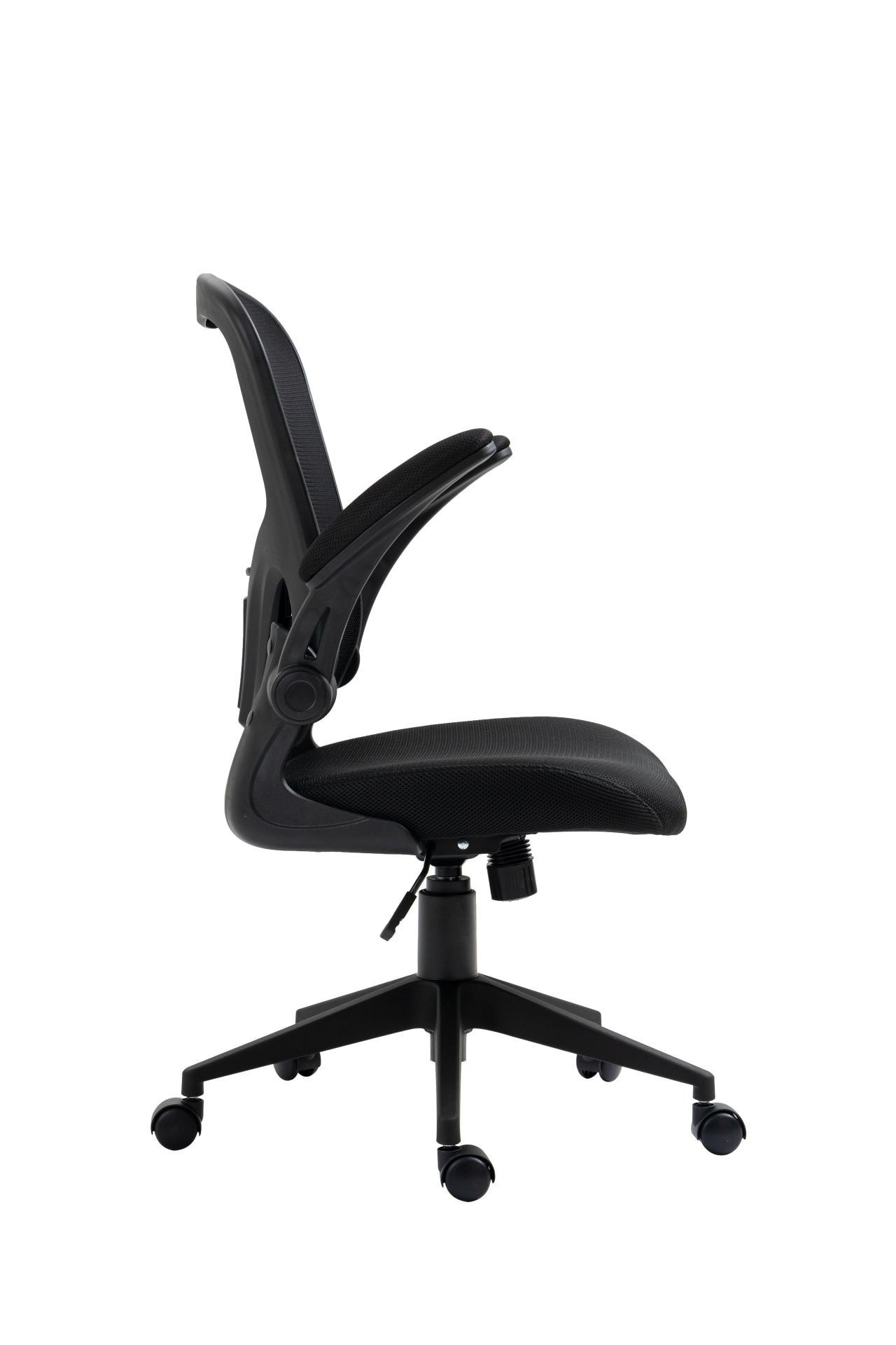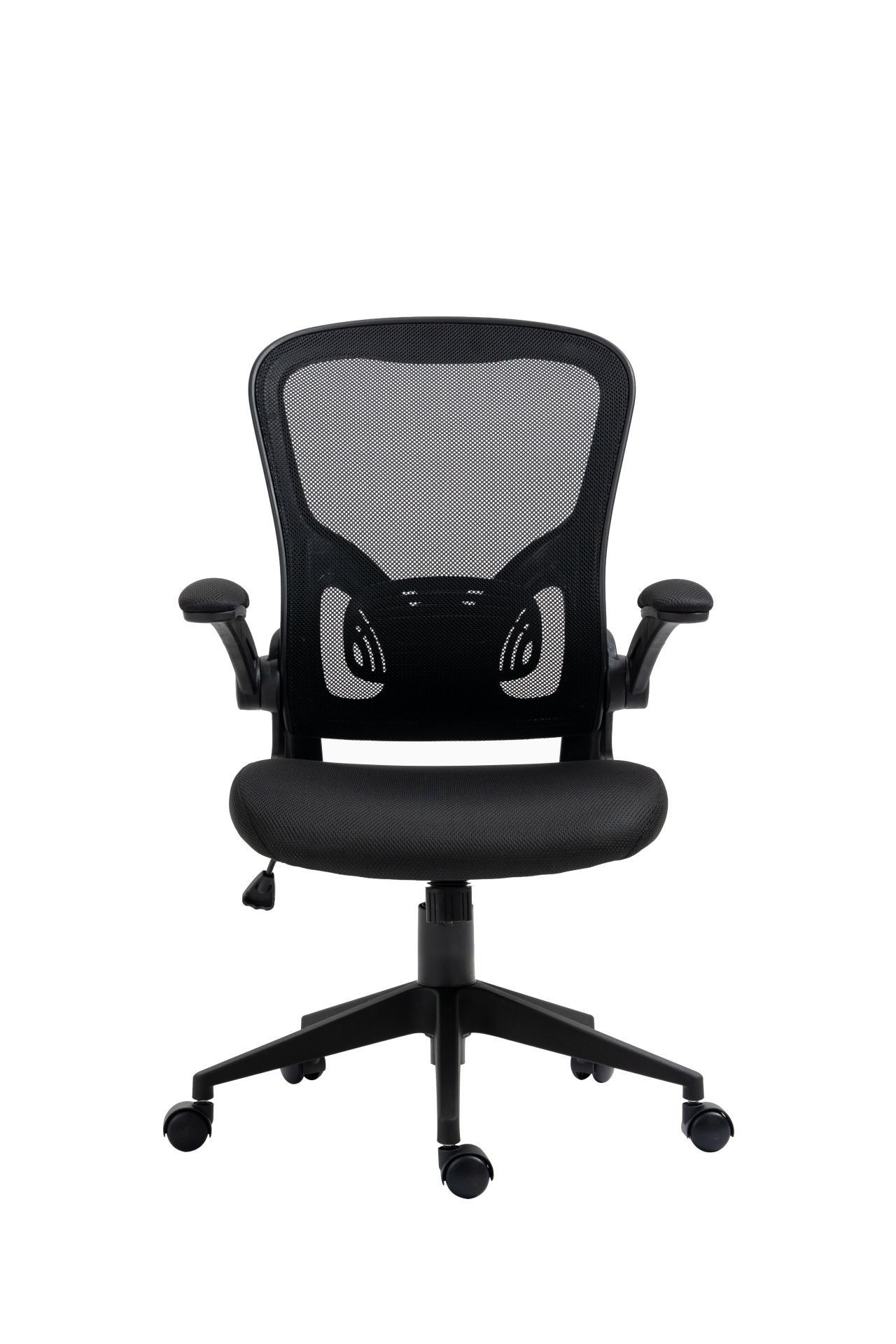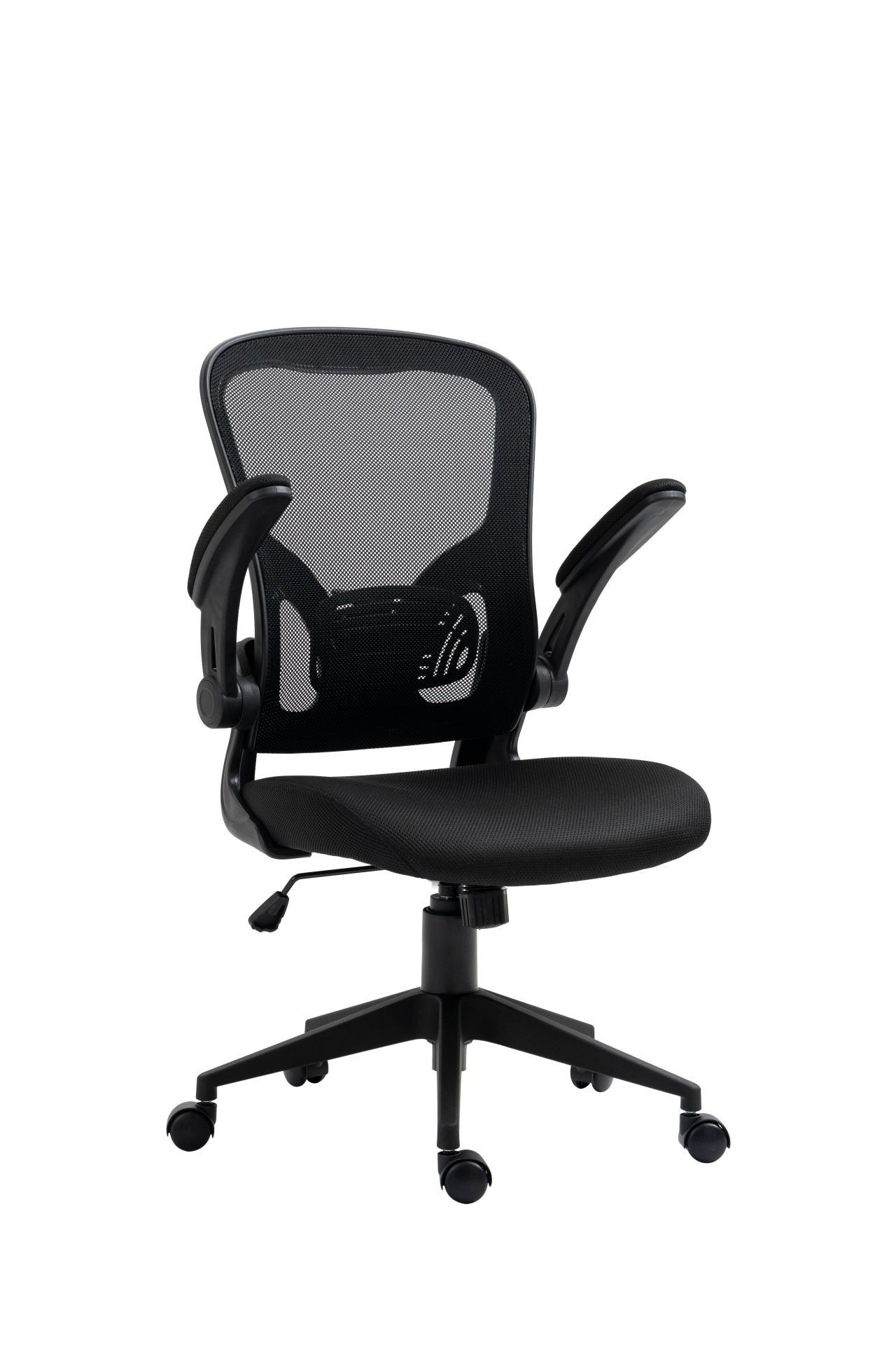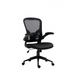Rozměry: - celková šířka: 64 cm - šířka sedáku: 50 cm - hloubka sedáku: 44 cm - šířka opěradla: 50 cm - výška opěradla: 55 cm - celková výška: 96-110 cm - výška sedáku: 45-55 cm - výška područek: 69-79 cm Materiál: - čalounění: membránová tkanina + síťovina - základna a kolečka: PP plast Barva: - sedák + opěradlo: černá - základna + područky: černá Ostatní: - mechanismus TILT - zvedací (skládací) područky