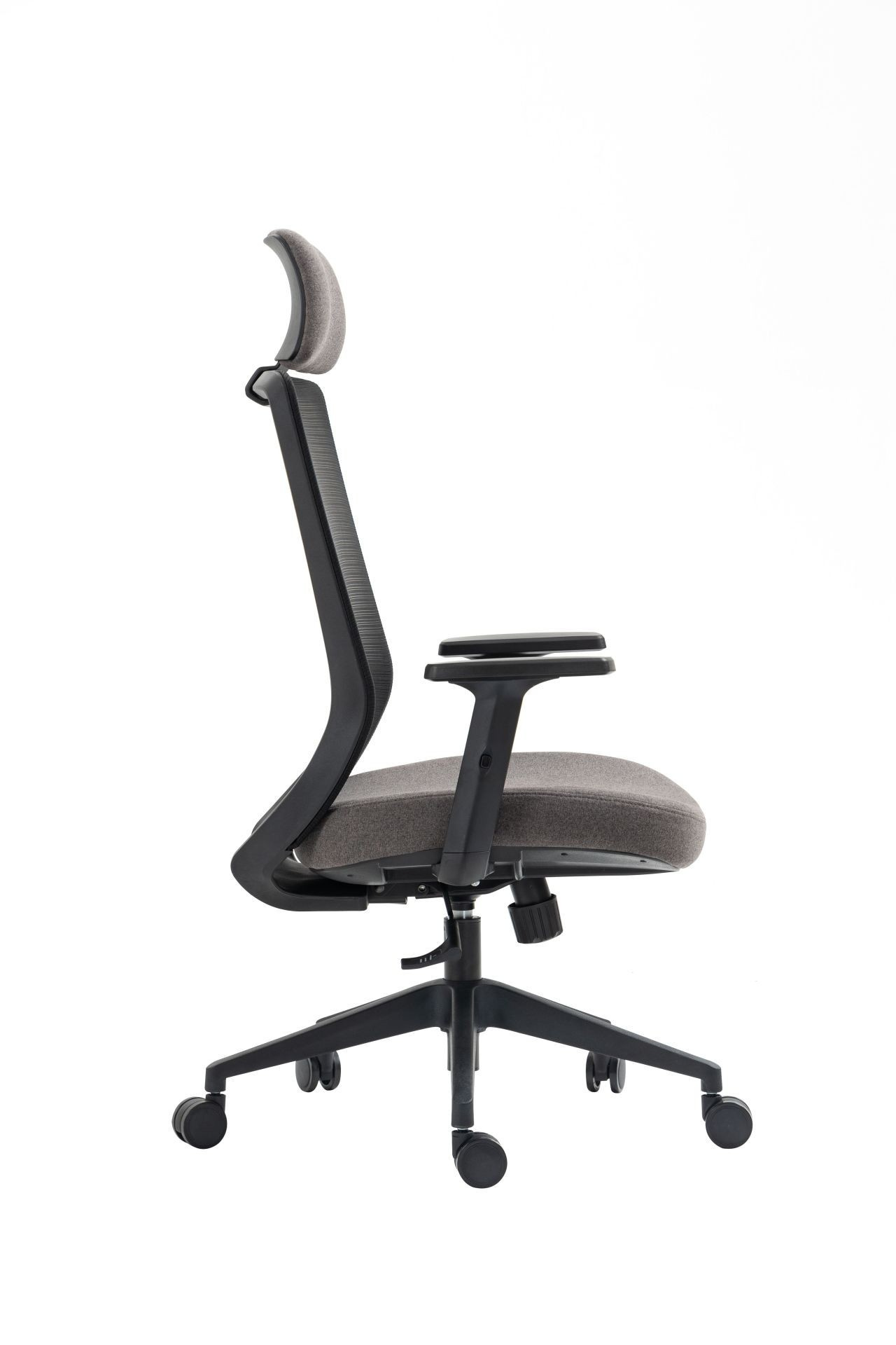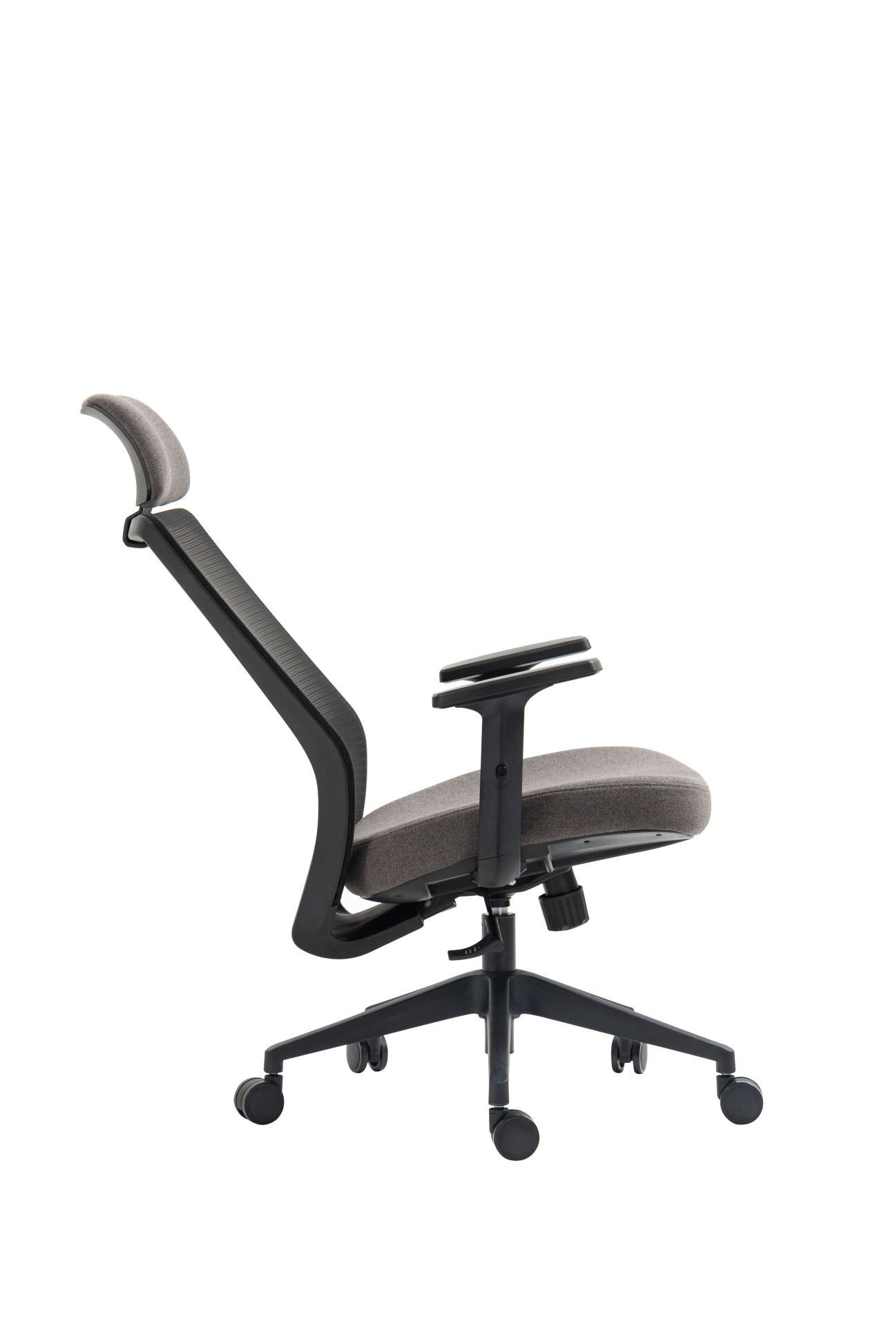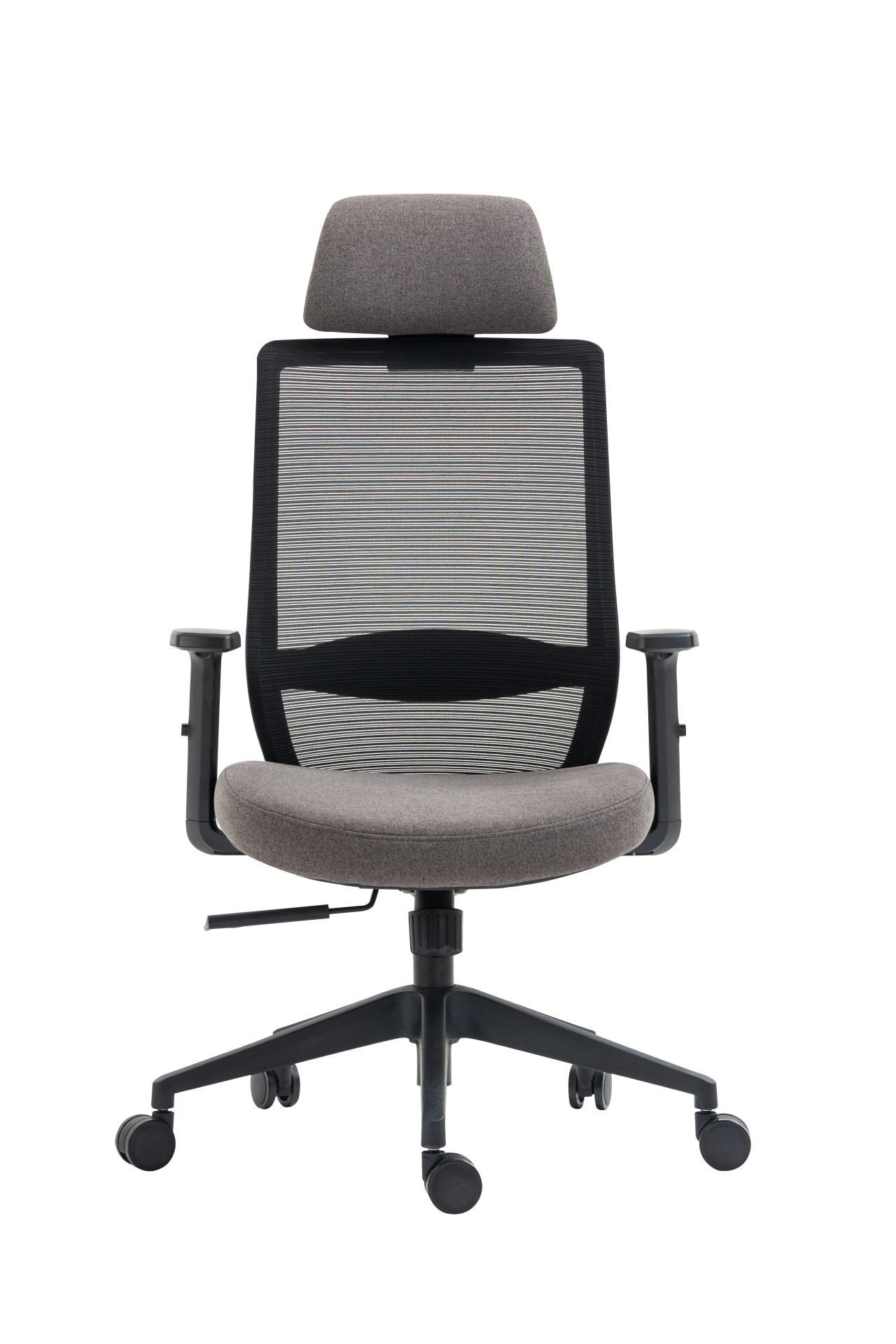 Rozměry: - celková šířka: 63 cm - šířka sedáku: 49 cm - hloubka sedáku: 45 cm - šířka opěradla: 46 cm - výška opěradla: 65 cm - celková výška: 117-127 cm - výška sedáku: 46-56 cm - výška područek: 64-74 cm Materiál: - čalounění: látka + síťovina - základna a kolečka: plast PP Barva: - sedák: šedý - opěradlo: šedé + černé - základna + područky: černé Další: - mechanismus TILT - područky: nastavitelná výška