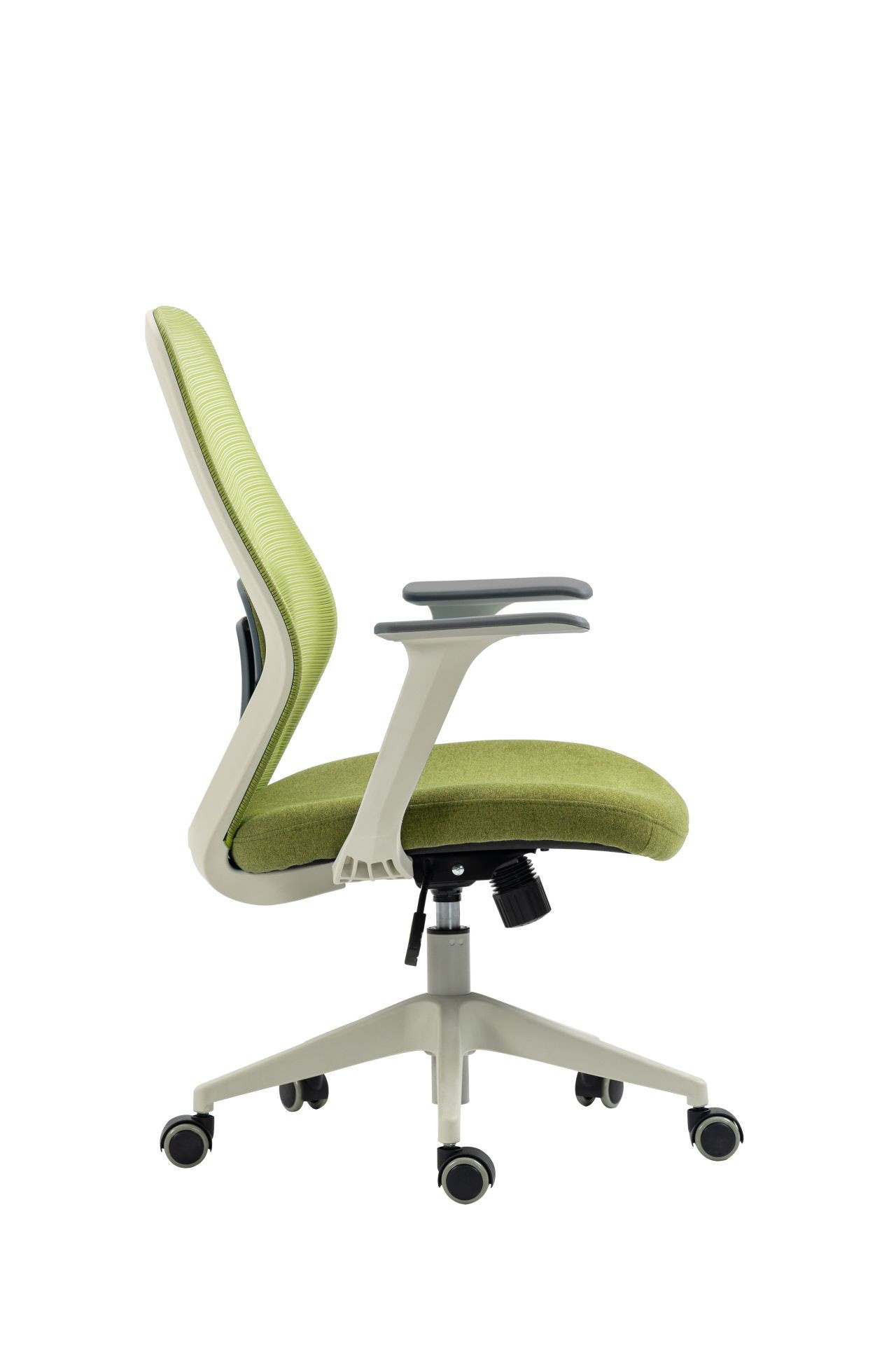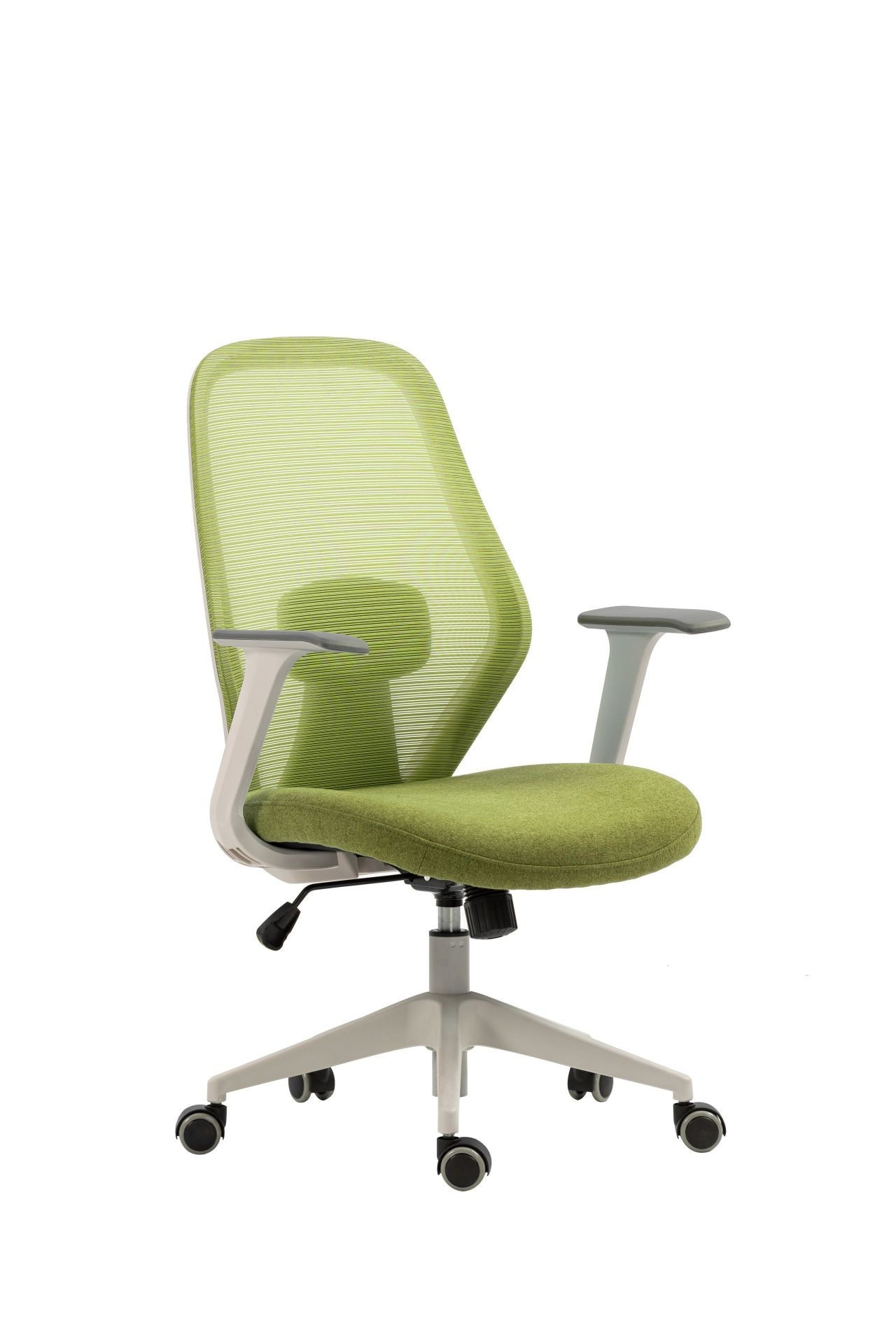 Rozměry: - celková šířka: 65 cm - šířka sedáku: 50 cm - hloubka sedáku: 44 cm - šířka opěradla: 46 cm - výška opěradla: 67 cm - celková výška: 97-107 cm - výška sedáku: 43-53 cm - výška područek: 66-76 cm Materiál: - čalounění: látka + síťovina - základna a kolečka: plast PP Barva: - sedák + opěradlo: limetková - základna + područky: šedá Ostatní: - mechanismus TILT - pevné područky