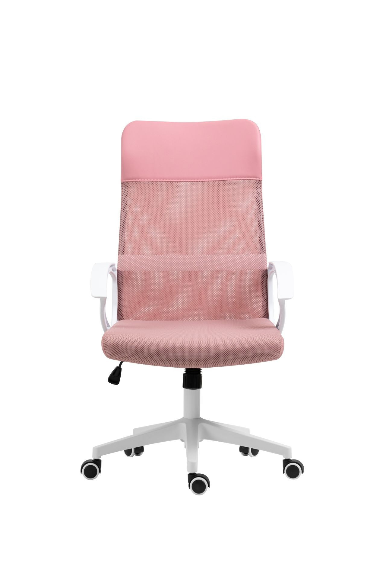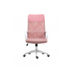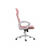 Rozměry: - šířka: 59 cm - hloubka: 48 cm - celková výška: 107-117 cm - výška sedáku: 44-54 cm Materiál - čalounění: membránová tkanina + síťovina + ekokůže - základna: plast Barva: - sedák + opěradlo: růžová - základna + područky: bílá Další: - mechanismus TILT - pevné područky