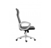Rozměry: - šířka: 59 cm - hloubka: 48 cm - celková výška: 107-117 cm - výška sedáku: 44-54 cm Materiál - čalounění: membránová tkanina + síťovina + ekokůže - základna: plast Barva: - sedák + opěradlo: šedé - základna + područky: bílé Další: - mechanismus TILT - pevné područky