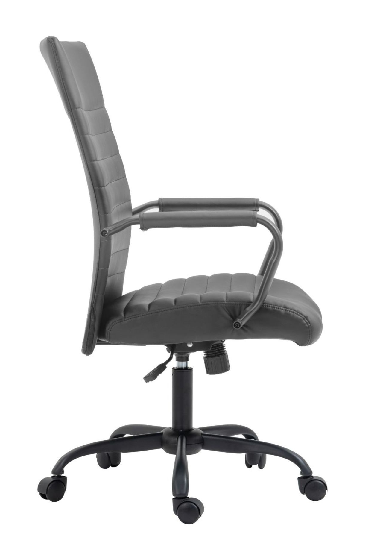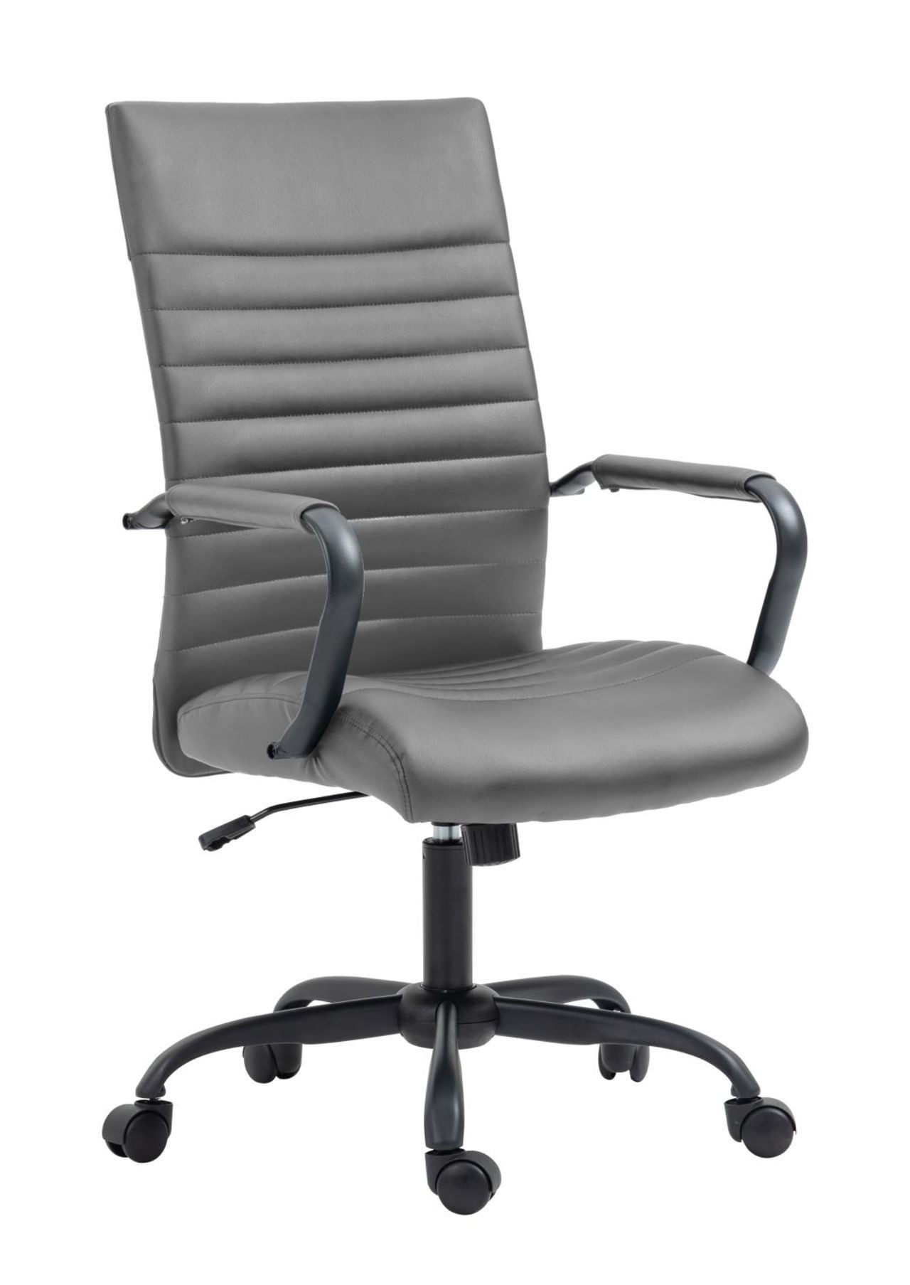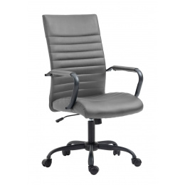 Rozměry: - šířka: 58 cm - hloubka: 51 cm - celková výška: 106-116 cm - výška sedáku: 47-57 cm Materiál - čalounění: ekokůže - základna: Barva: - sedák + opěradlo: šedé - základna: černá Ostatní: - mechanismus TILT - pevné područky
