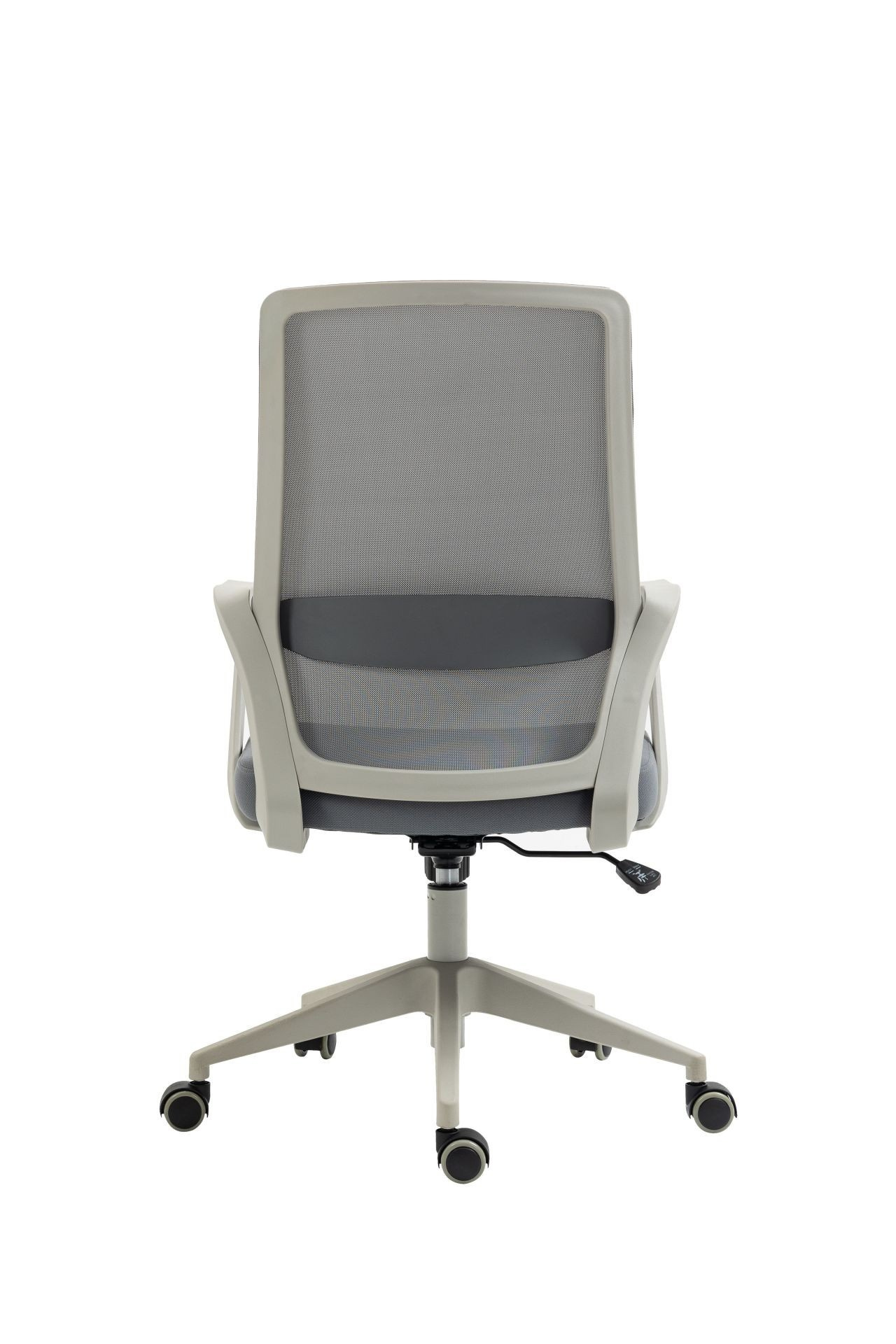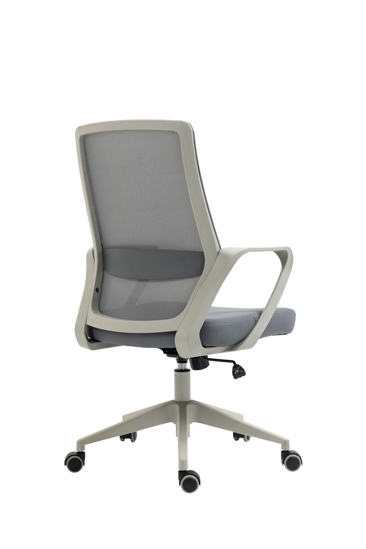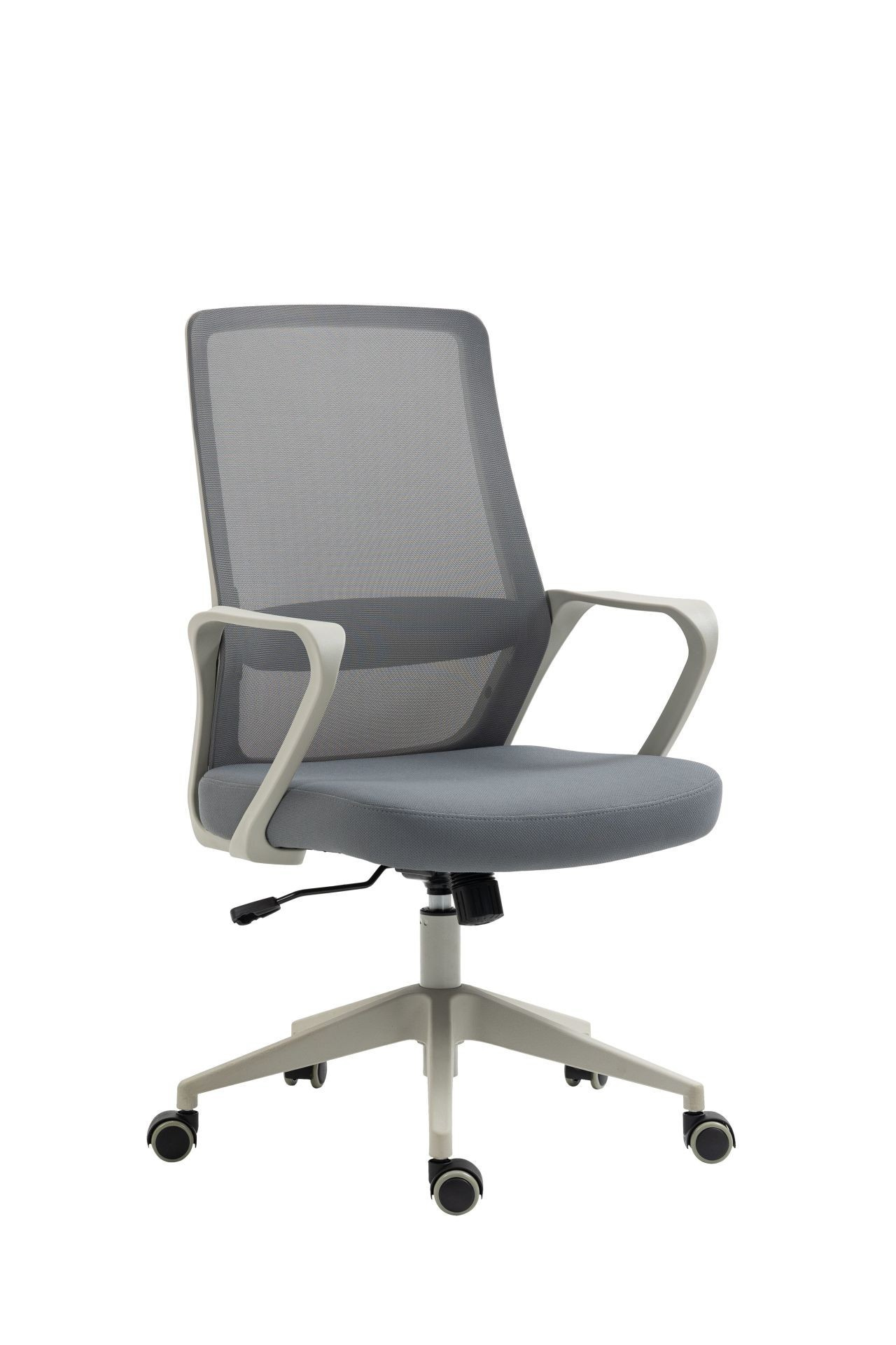Rozměry: - celková šířka: 87 cm - šířka sedáku: 50 cm - hloubka sedáku: 46 cm - šířka opěradla: 45 cm - výška opěradla: 60 cm - celková výška: 99-109 cm - výška sedáku: 44-54 cm - výška područek: 64-74 cm Materiál: - čalounění: membránová tkanina + síťovina - základna a kolečka: PP plast Barva: - sedák + opěradlo: šedá - základna + područky: šedá Další: - mechanismus TILT - pevné područky