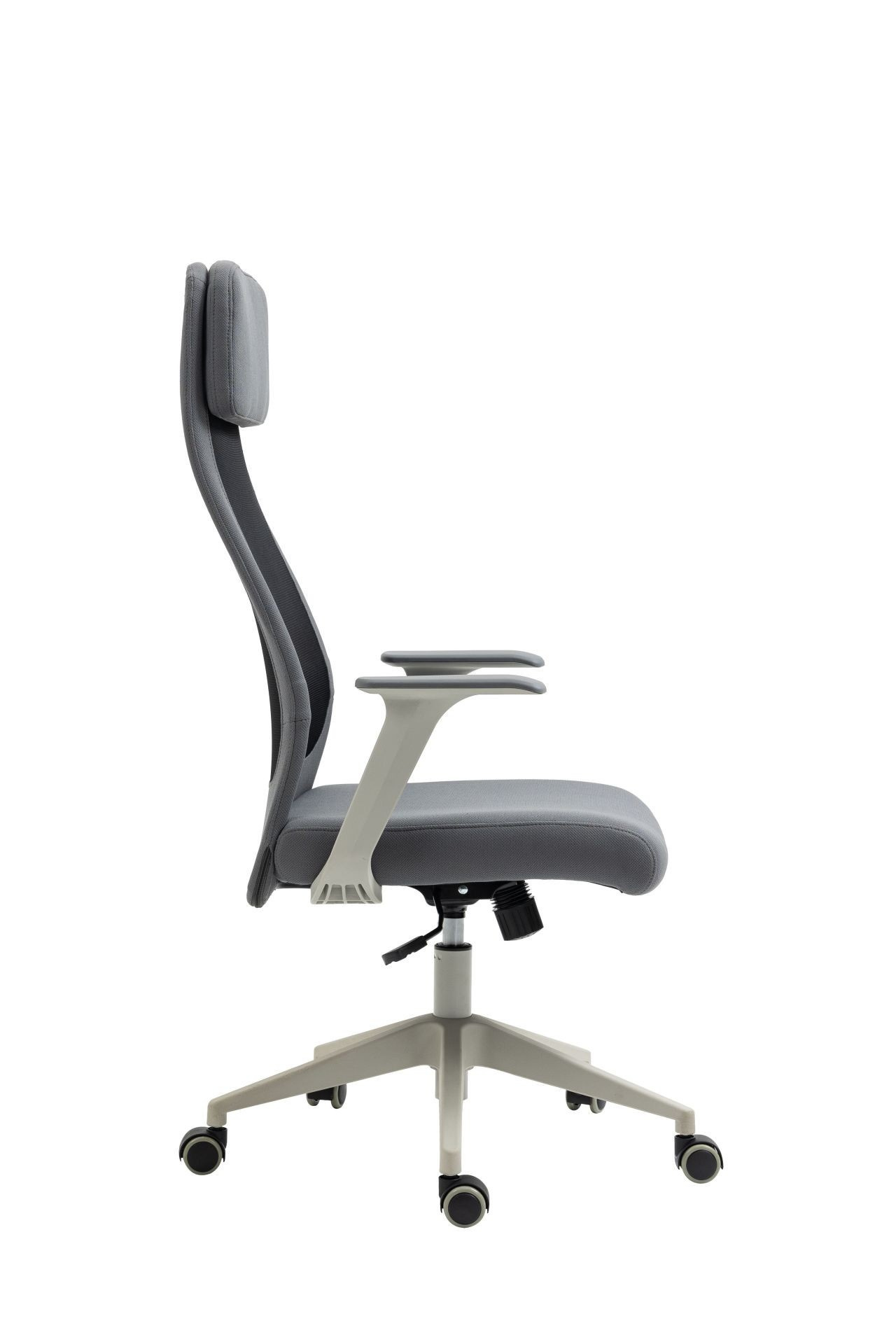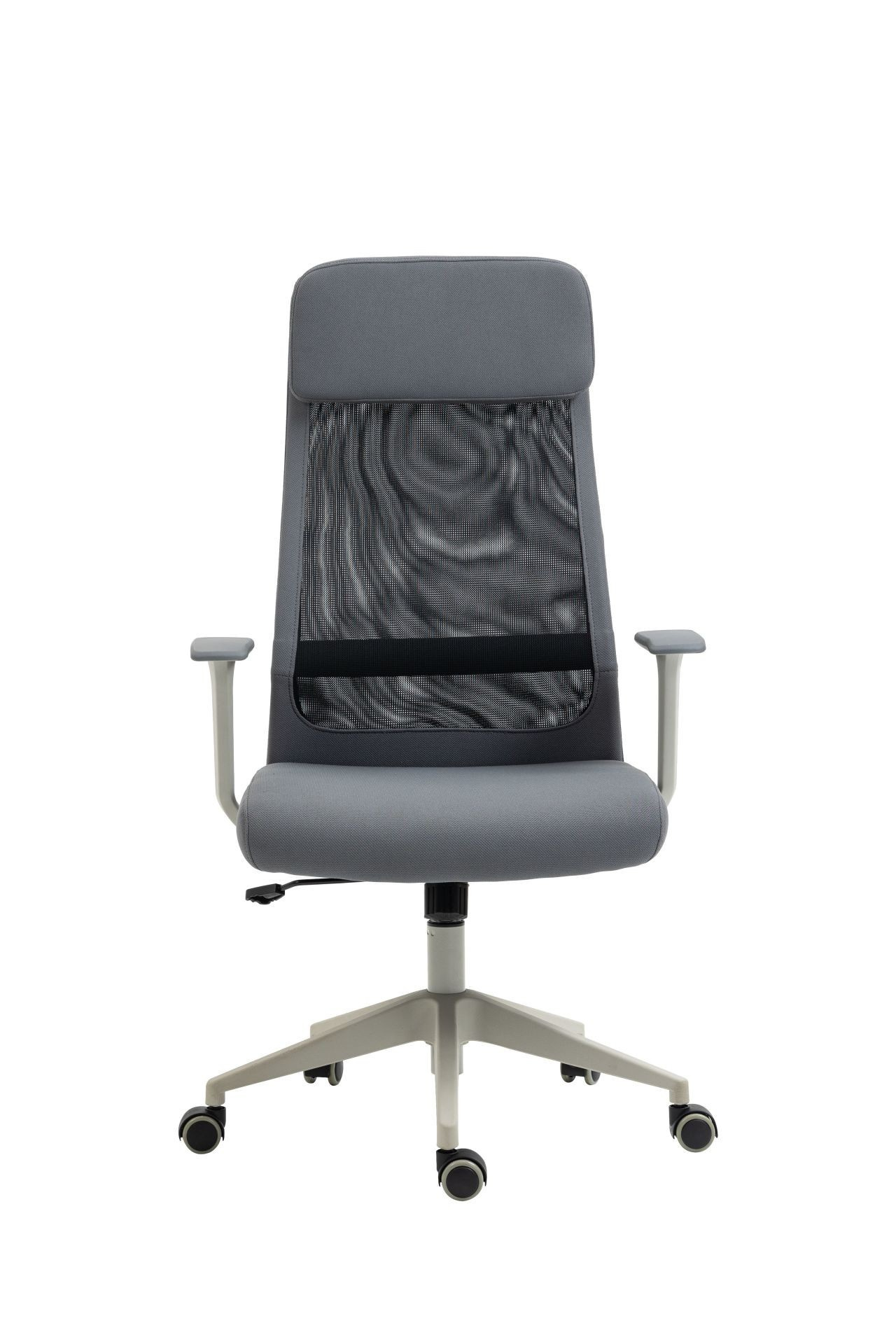 Rozměry: - celková šířka: 66 cm - šířka sedáku: 51 cm - hloubka sedáku: 46 cm - šířka opěradla: 49 cm - výška opěradla: 80 cm - celková výška: 112-122 cm - výška sedáku: 45-55 cm - výška područek: 61-71 cm Materiál: - čalounění: látka + síťovina - základna a kolečka: plast PP Barva: - sedák + opěradlo: šedá - základna + područky: šedá Ostatní: - mechanismus TILT - pevné područky