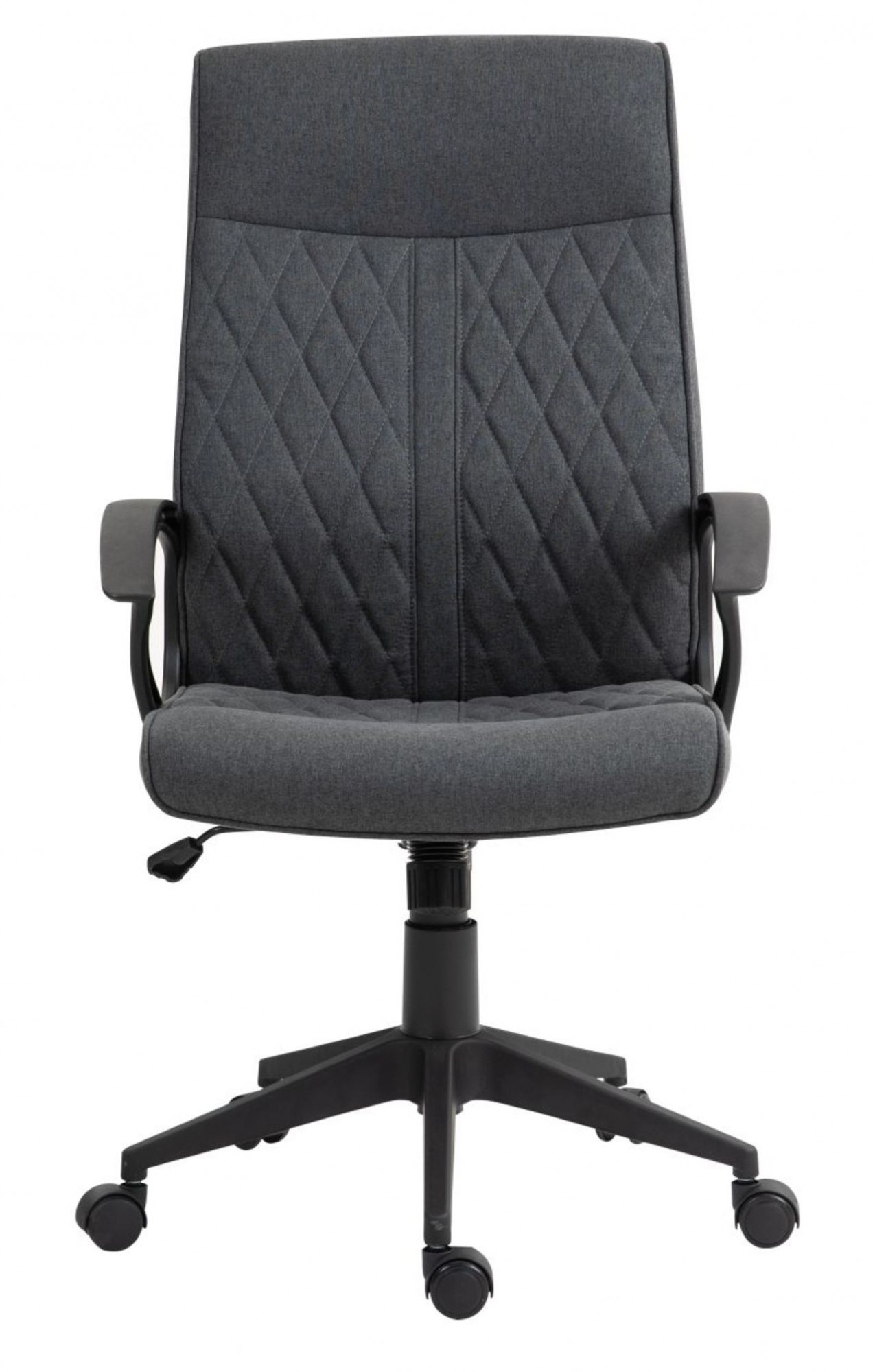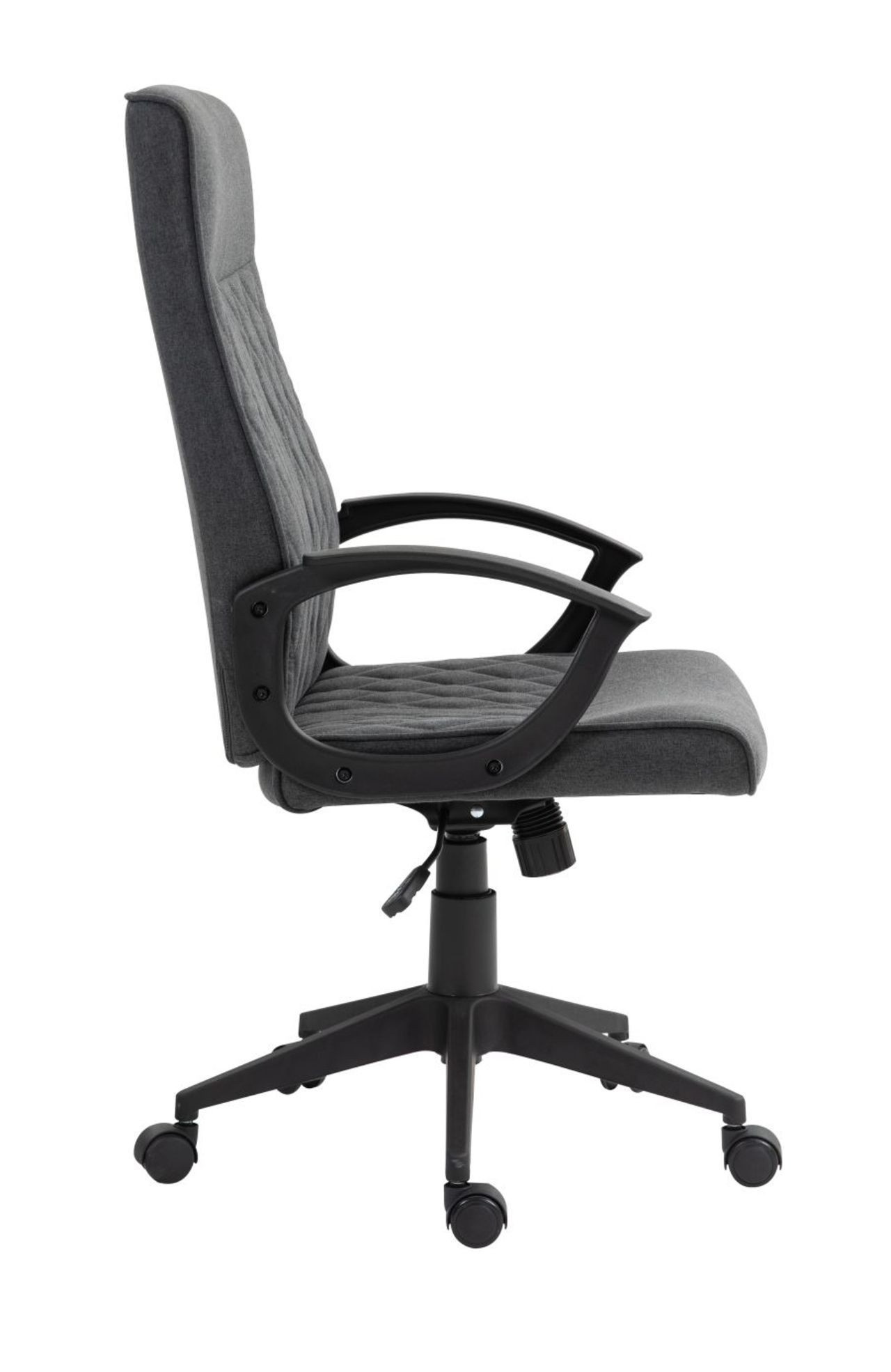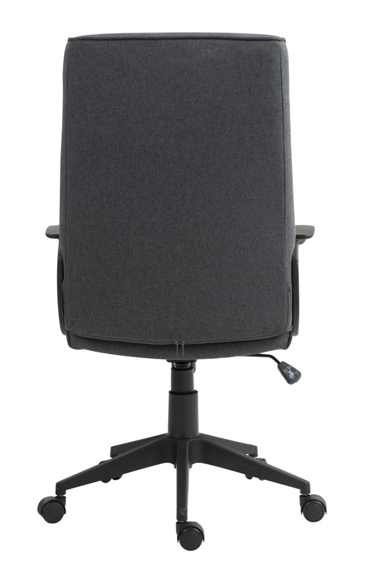 Rozměry: - celková šířka: 60 cm - šířka sedáku: 50 cm - hloubka sedáku: 51 cm - celková hloubka: 66 cm - šířka opěradla: 50 cm - výška opěradla: 67 cm - celková výška: 105-115 cm - výška sedáku: 47-57 cm Materiál: - čalounění: tkanina - základna: plast PP Barva: - sedák + opěradlo: tmavě šedá - základna + područky: černá Ostatní: - mechanismus TILT