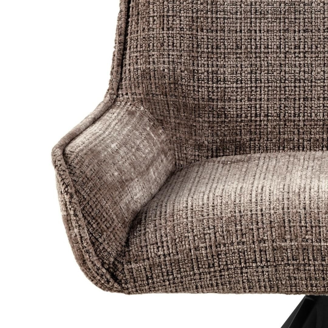 Židle do jídelny Eddie, která dodá sofistikovaný charakter každému prostoru díky nízkým područkám a hnědé tkanině s živým, jemným povrchem. Měkké zakřivení sedadla, elegantně zdůrazněné lemováním, vytváří sofistikovanou siluetu. Podporovaný 4hvězdičkovou černou otočnou základnou, bez námahy spojuje styl s moderní funkčností. Židle do jídelny s prohloubenými područkami a měkkými křivkami. Měkká hnědá tkanina s živým, texturovaným povrchem. Funkce otočná usnadňující posouvání. Ozdobná lemovka kolem sedáku. Černá 4hvězdičková základna vyrobená z oceli lakované práškovou barvou na černo. Certifikát FSC. Hnědá juta tkanina 24, 4-hvězdičková základna matná černá ocel s práškovým nástřikem s funkcí otáčení. Výška opěradla 32 cm Šířka sedáku 41 cm Hloubka sedáku 43 cm Maximální výška sedáku. 47 cm Max. zatížení 110 kg Váha židle: 9,1 kg