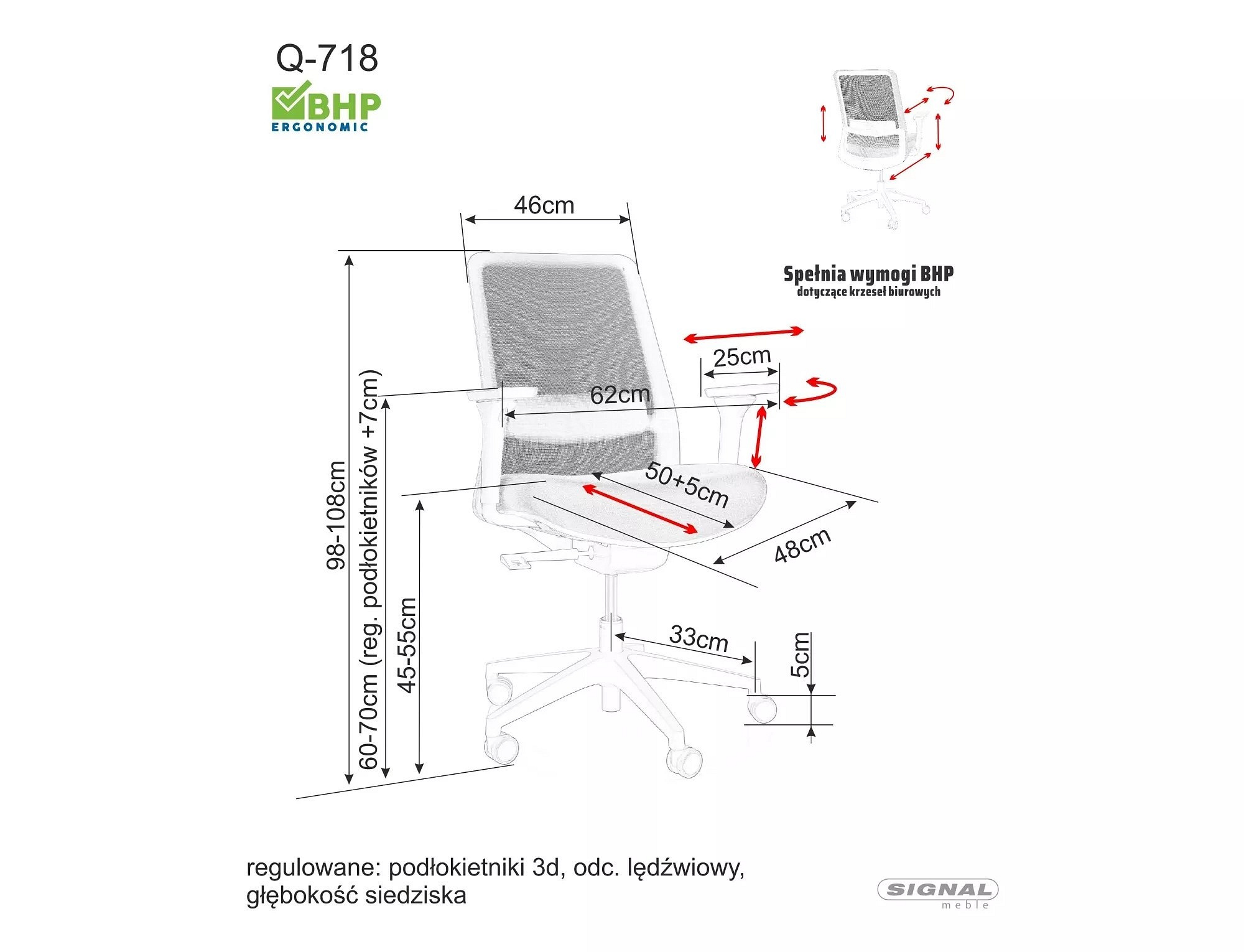 | Výška sedu - nastavitelná v cm | 45-55 cm |