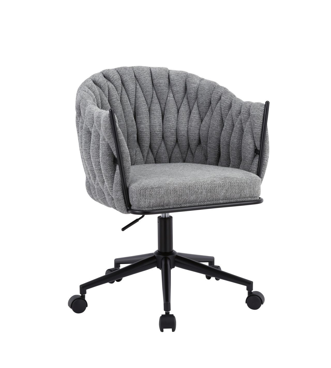 Rozměry: - šířka sedáku: 44 cm - celková hloubka: 46 cm - výška sedáku: 46-54 cm - celková výška: 77-88 cm - výška opěradla: 36 cm Materiál - čalounění: Fabb LORD - základna: kov s práškovým nástřikem Barva: - sedák: šedá - základna: černá