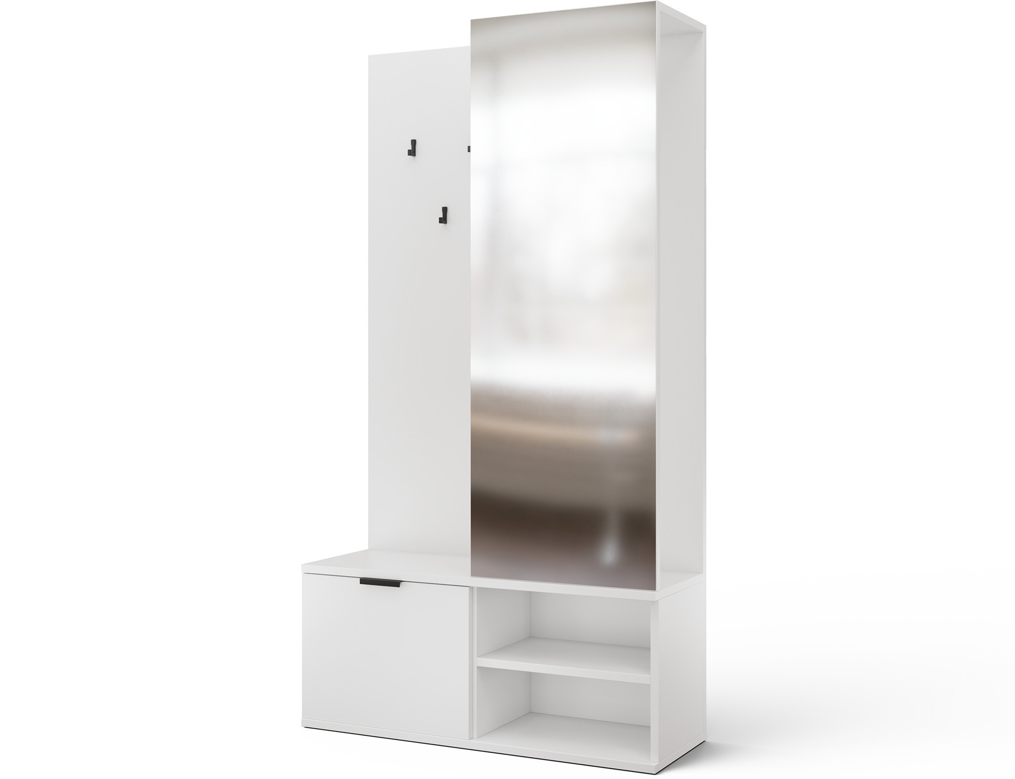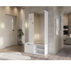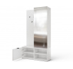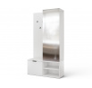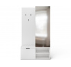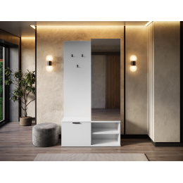 Chodbaová skříň Oturra je moderní, štíhlý kus nábytku, který kombinuje věšák na kabáty, zrcadlo a úložný prostor na boty v jednom elegantním celku. Se šířkou 100 cm, výškou 189 cm a hloubkou 35 cm funguje отлично i v úzké chodbě, což pomáhá udržovat vstupní prostor uklizený. Horní část obsahuje lištu pro ramínka na bundy a kabáty, spolu s kovovým nábytkovým háčkem na doplňky, zatímco spodní část nabízí praktickou skříňku a dvě police na boty nebo jiné předměty. Šatní skříň Oturra je vyrobena z odolné laminované desky: čela, korpus a zadní/vnitřní panely jsou všechny vyrobeny ze stejného materiálu a hrany jsou zakončeny PVC, což zvyšuje odolnost proti poškození a usnadňuje čištění. Korpus a police jsou silné 16 mm a celá jednotka váží 53 kg, což zajišťuje stabilitu a pevnou kvalitu po mnoho let. Je to ideální volba, pokud hledáte funkční minimalistickou předsíňovou skříň se zrcadlem, tyčí na oblečení a úložným prostorem na boty.