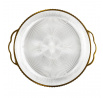 Podnos Mirage o průměru 38,5 cm je elegantní a praktické řešení pro servírování nápojů a občerstvení. Vyrobena z vysoce kvalitního plastu, je lehká, odolná a snadno se čistí. Zlatý okraj jí dodává stylový vzhled, který se dokonale hodí jak do moderních, tak i klasických interiérů. Ideální pro každodenní jídla i výjimečné příležitosti. Hmotnost (g): 320 Materiál: PET
