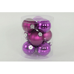 Skleněné kulaté vánoční ozdoby na pověšení ve fialových barvách o průměru 7 cm, rozzáří váš stromek i interiér. Balené jsou v PVC boxu po 9 kusech a dodají vaší výzdobě sofistikovaný lesk a kouzlo. Perfektní pro vytvoření sváteční atmosféry, ať už zdobíte stromeček nebo jiná místa ve vašem domě.