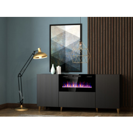 Komoda s vestaveným krbem PAFOS RTV 180, Černý mat