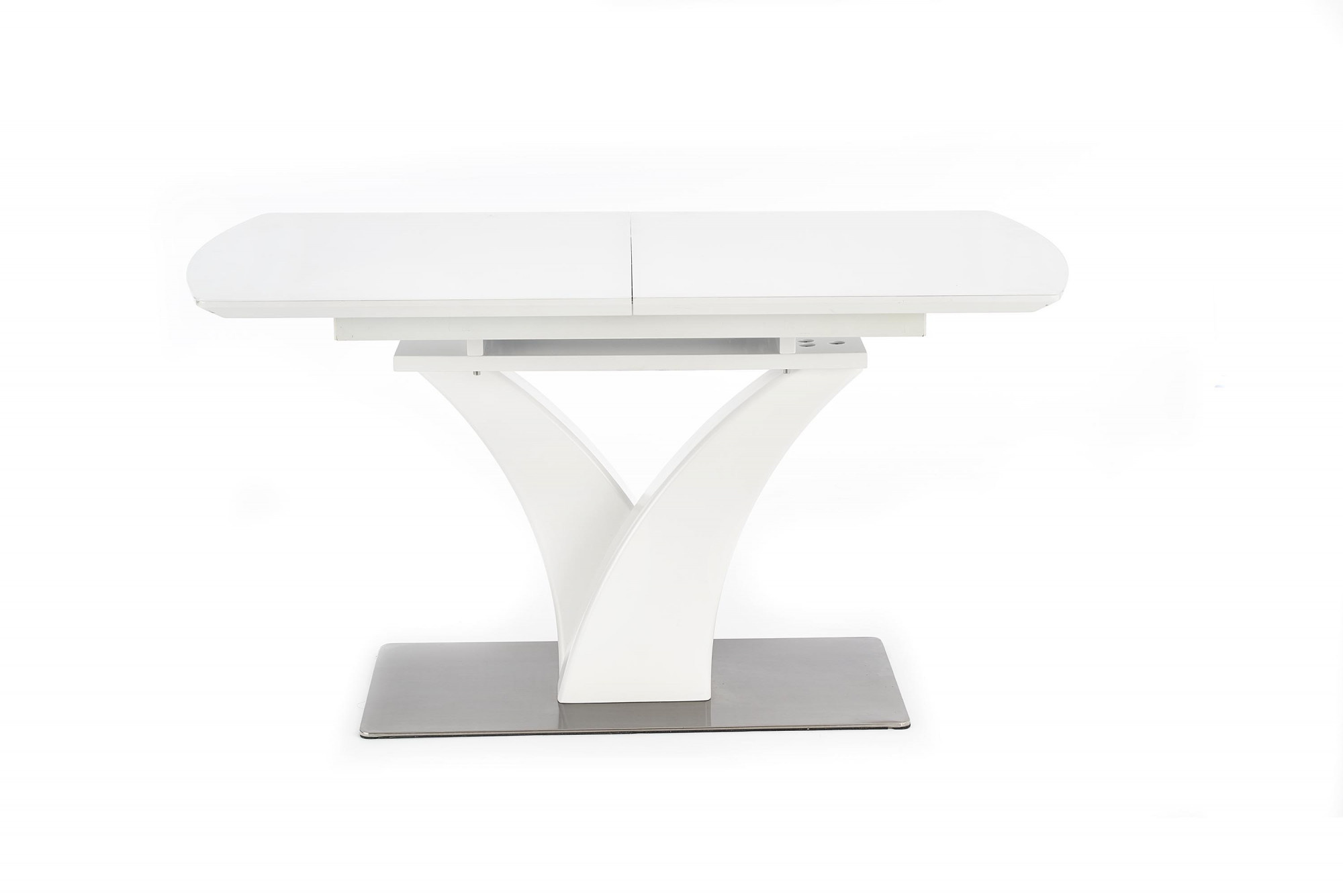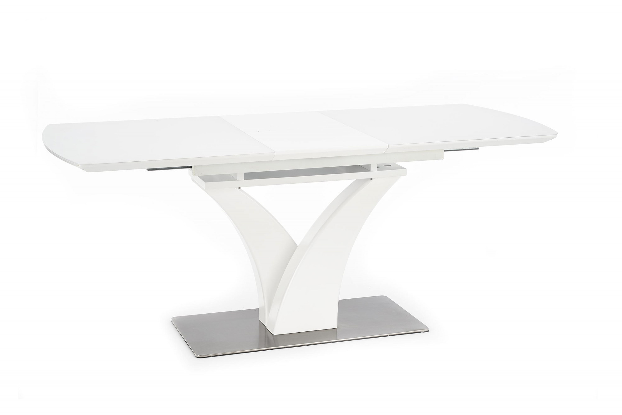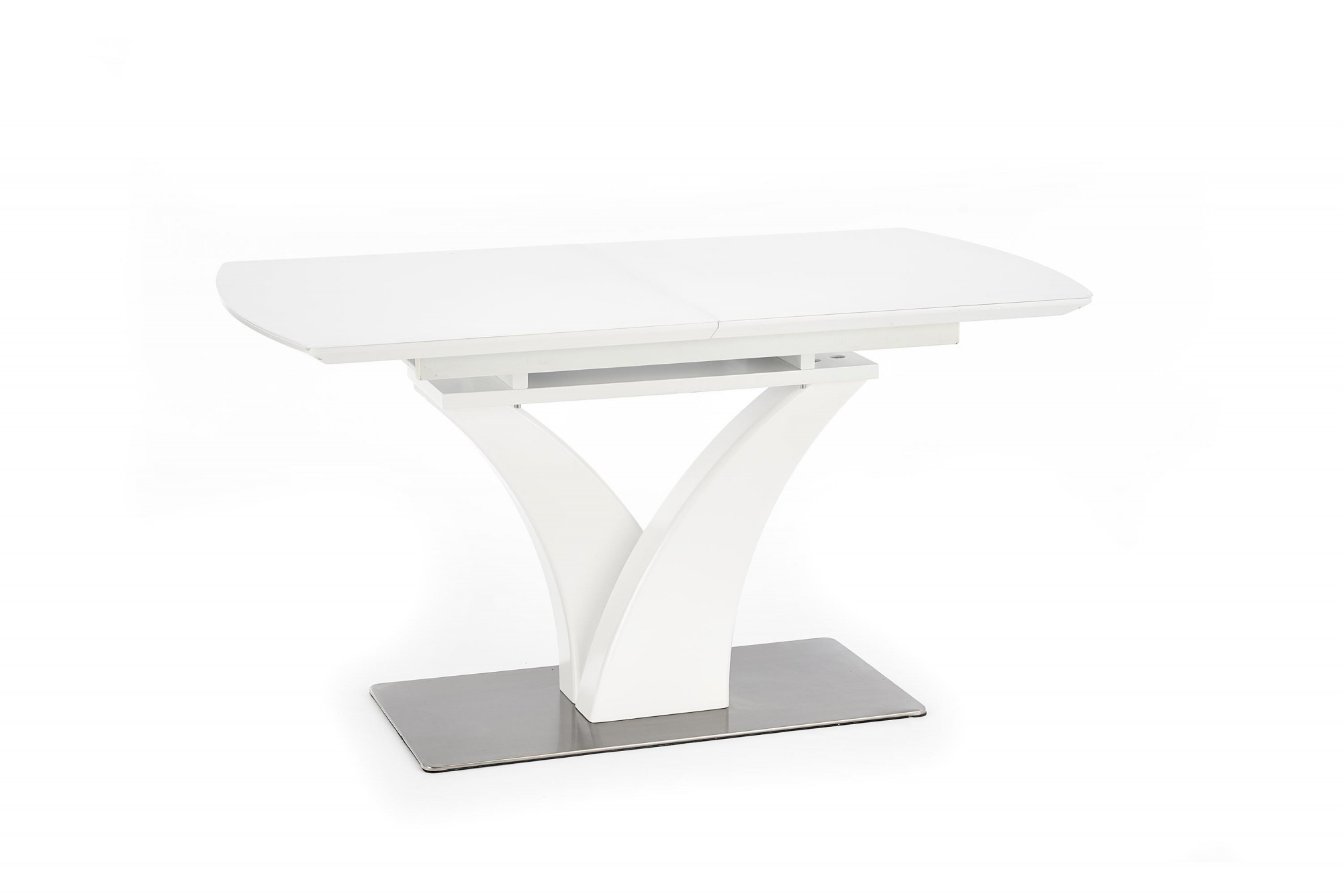 rozměry: 140÷180/80/75 cm, skládací stůl, materiál: sklo / lakovaná MDF / nerezová ocel, barva: bílá matná