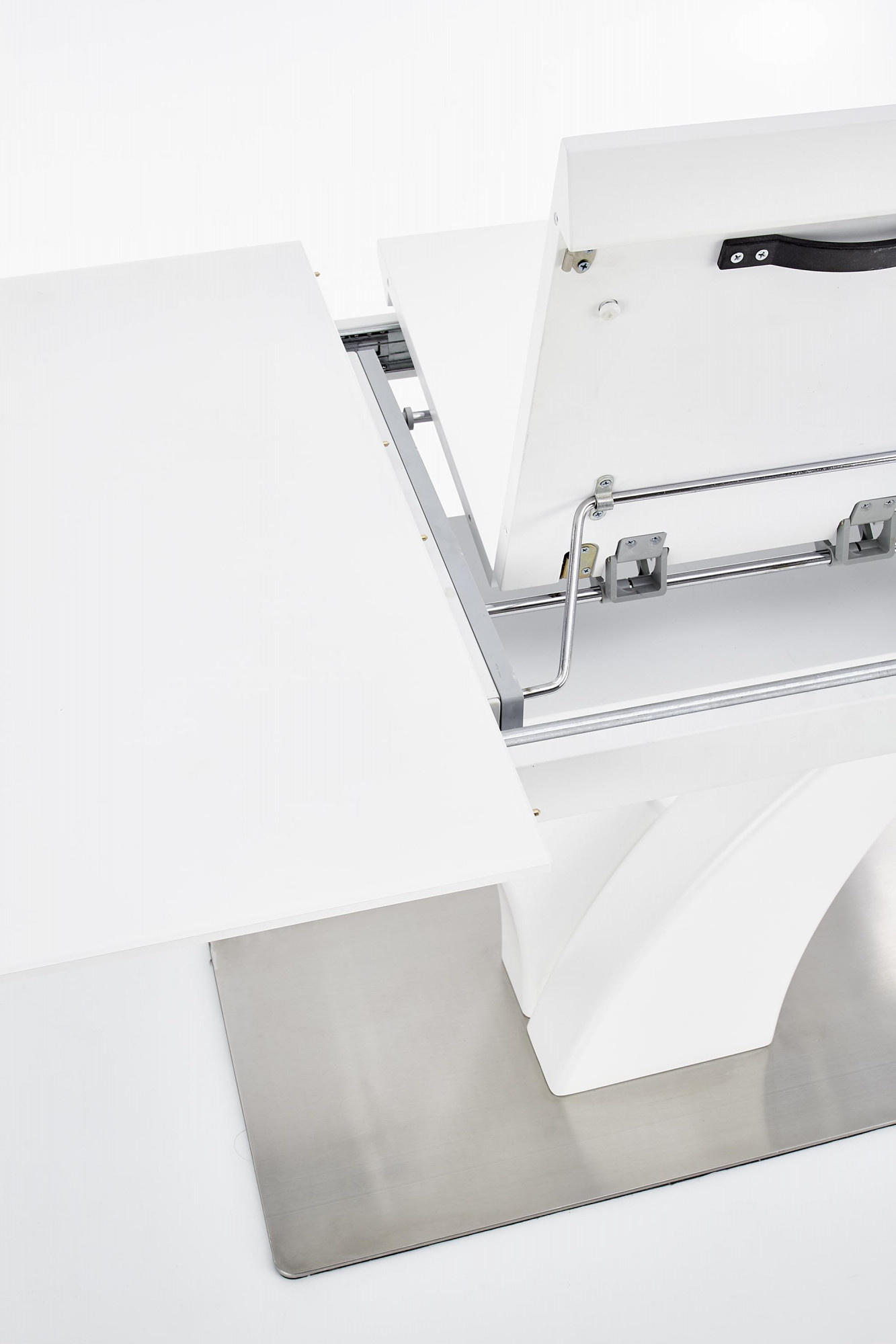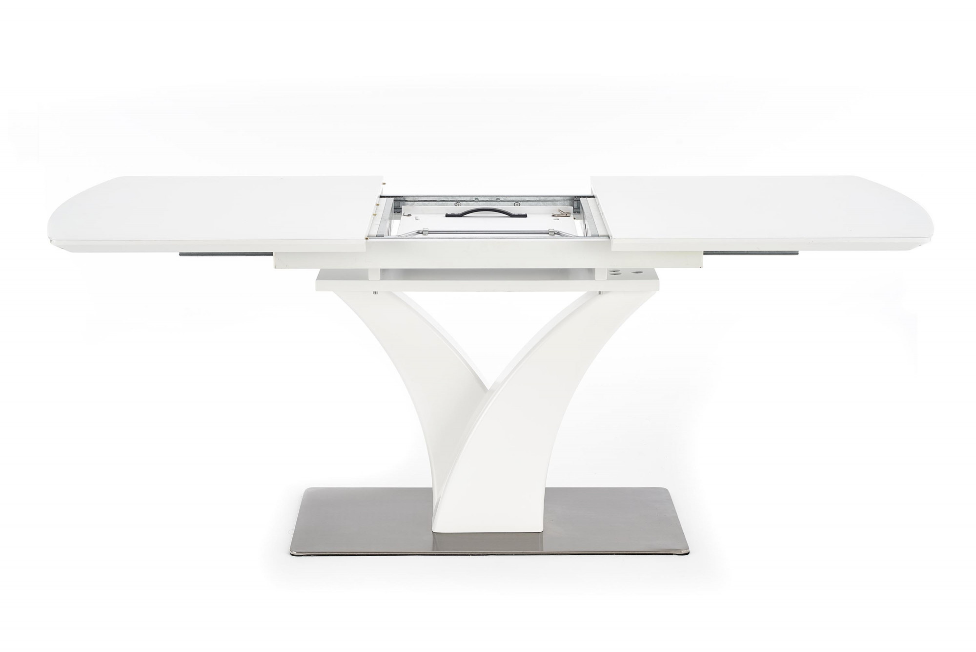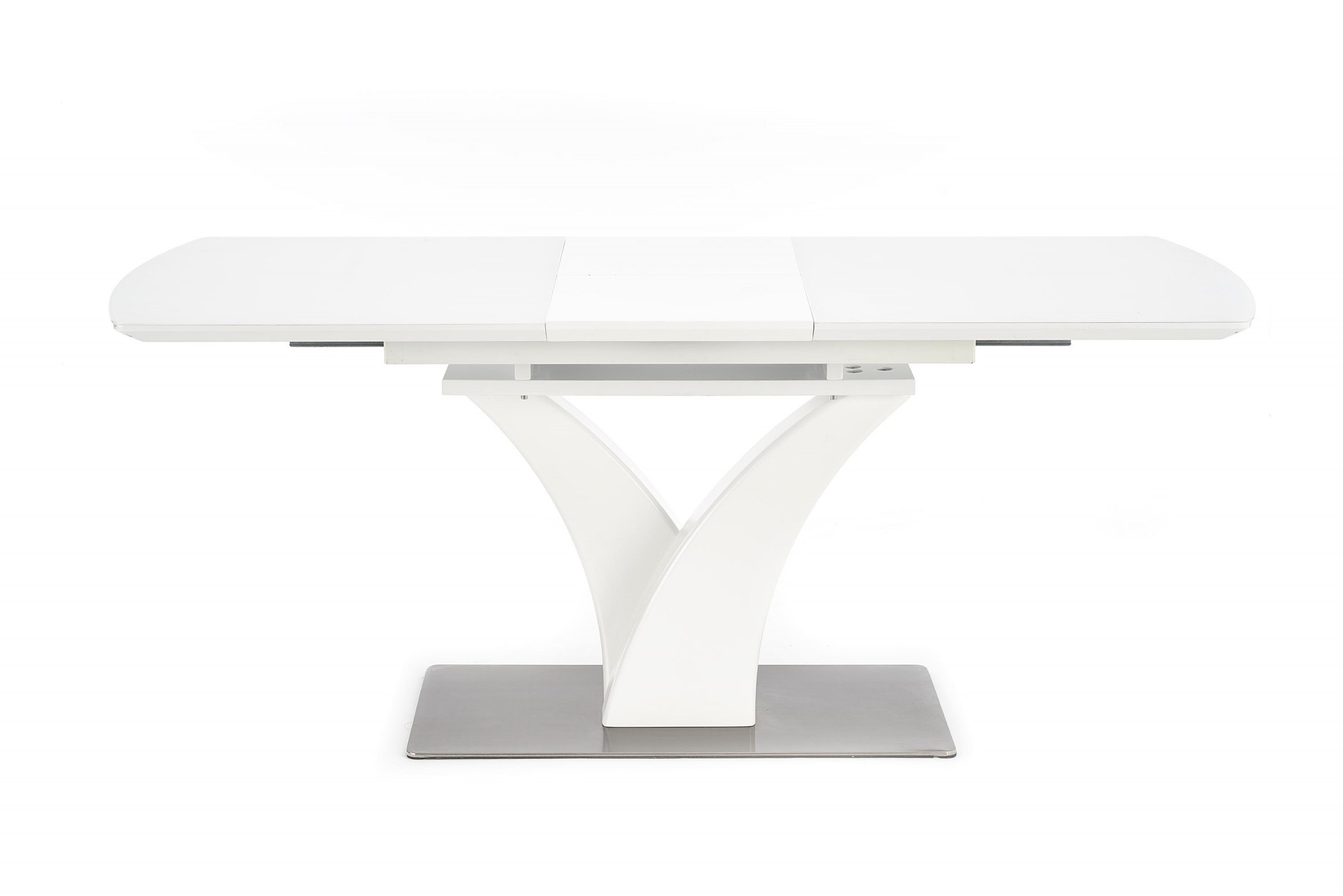 rozměry: 140÷180/80/75 cm, skládací stůl, materiál: sklo / lakovaná MDF / nerezová ocel, barva: bílá matná