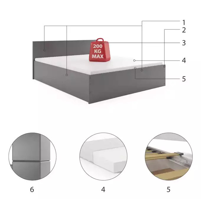 Postel PANAMAX s matrací, 140x200 cm, Grafit