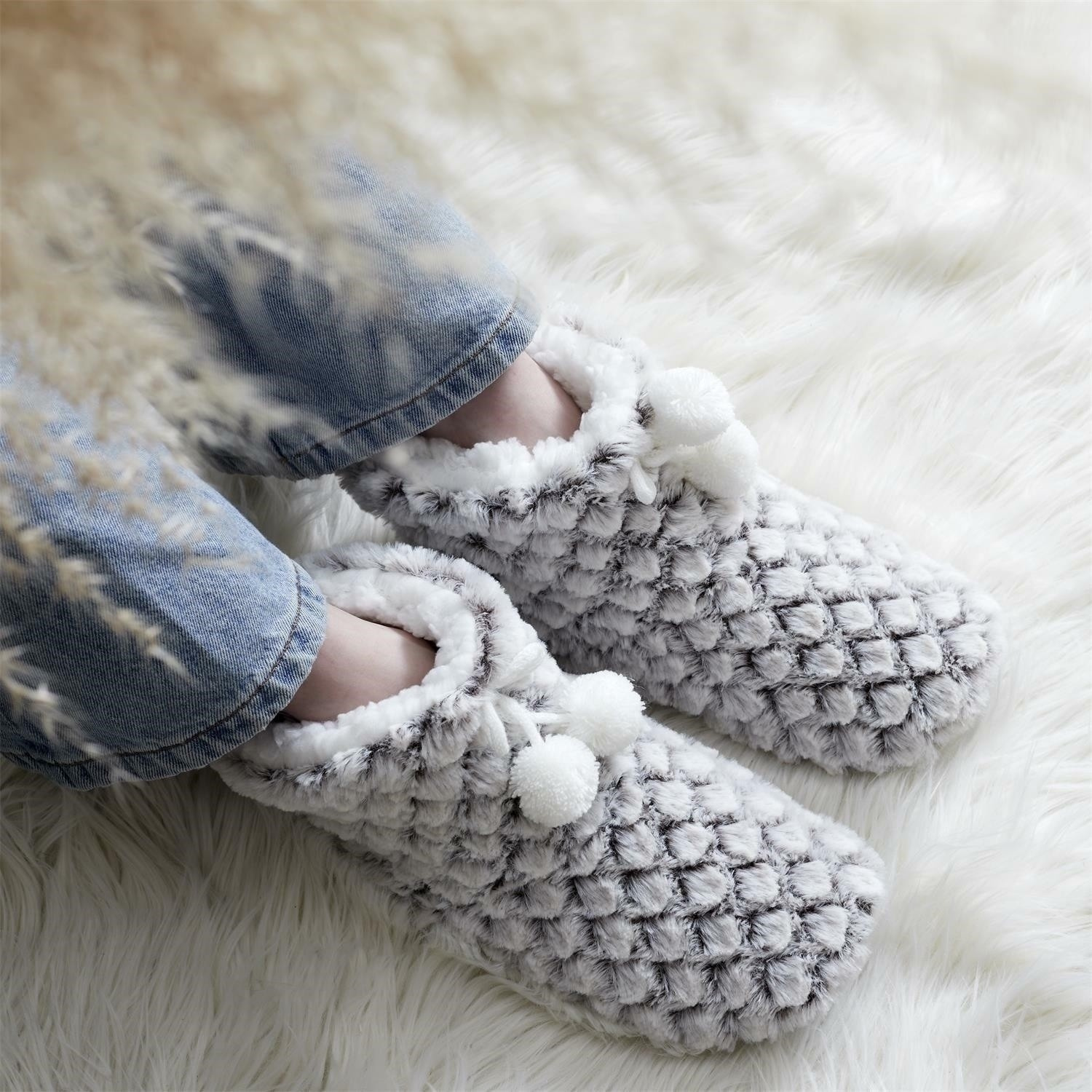 Pantofle/bačkory s bambulemi velikost 36-41 šedé
