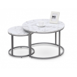 Konferenční stolek PAOLA sada, mramor/stříbrná