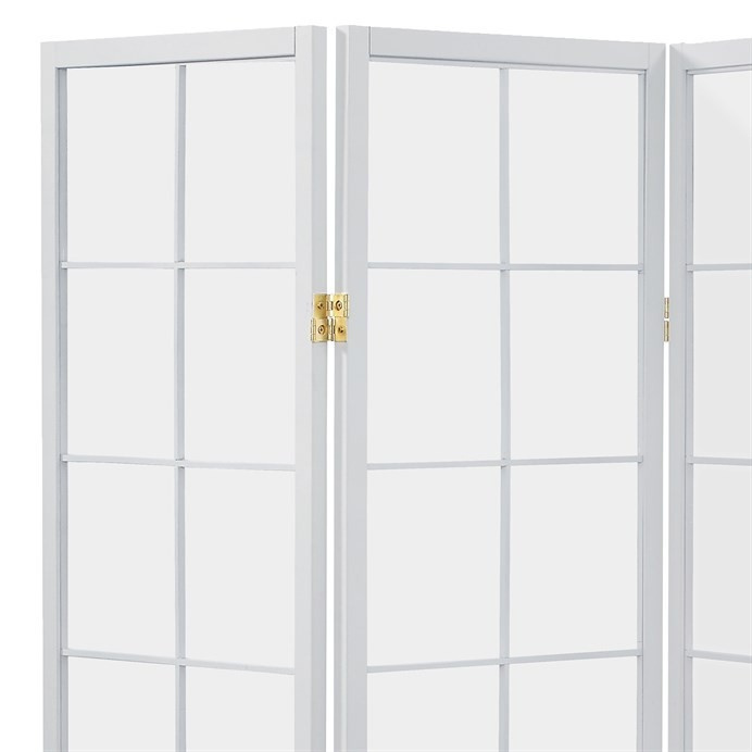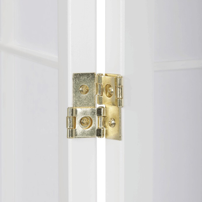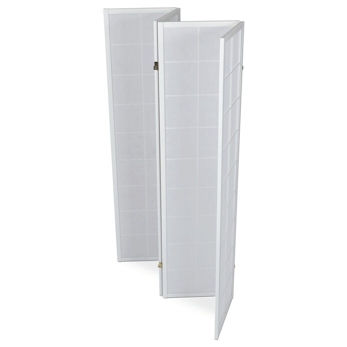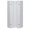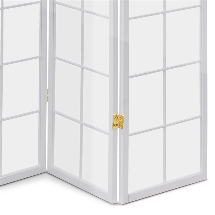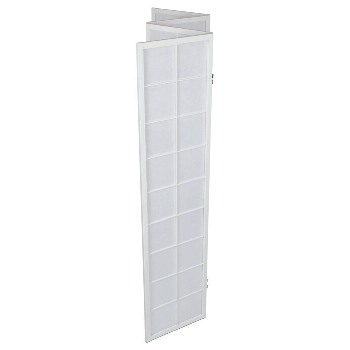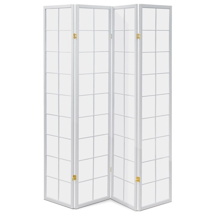 4dílný volně stojící paraván s konstrukcí z masivního smrkového dřeva v bílé barvě a výplní z bílé netkané textilie. Plní nejen funkci okrasnou, ale také praktickou. Lze jej použít jako zástěnu nebo diskrétní i optickou dělící příčku nejen v bytě, ale i v komerčních prostorách. Díky skládací konstrukci a celkové nízké hmotnosti jej lze bez problémů přemísťovat a manipulovat s ním. Kombinace dřeva a netkané textilie působí vzdušným dojmem, stylově lze paraván umístit do jakkoli zařízeného interiéru. V každém si najde zasloužené místo. Výška paravánu je 178 cm, šíře jednoho dílu 43,5 cm, celková plná šíře je 176 cm. Tloušťka stěny jsou 2 cm. Stěny paravánu jsou k sobě připevněny kovovými pomosazenými panty. Celková hmotnost je 6,5 kg.