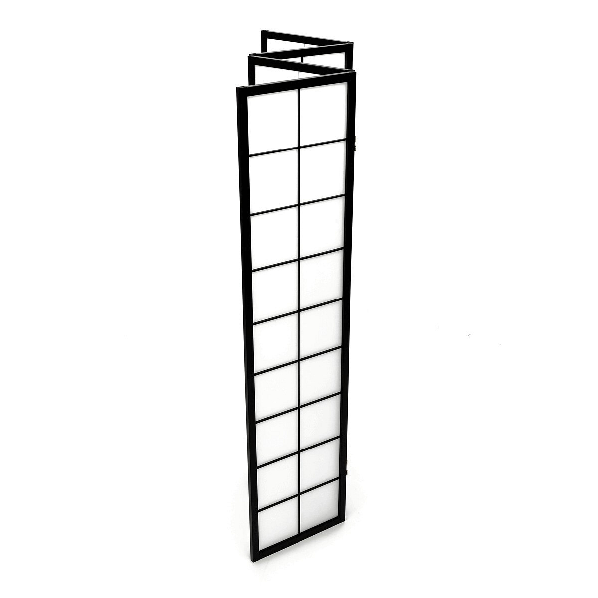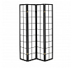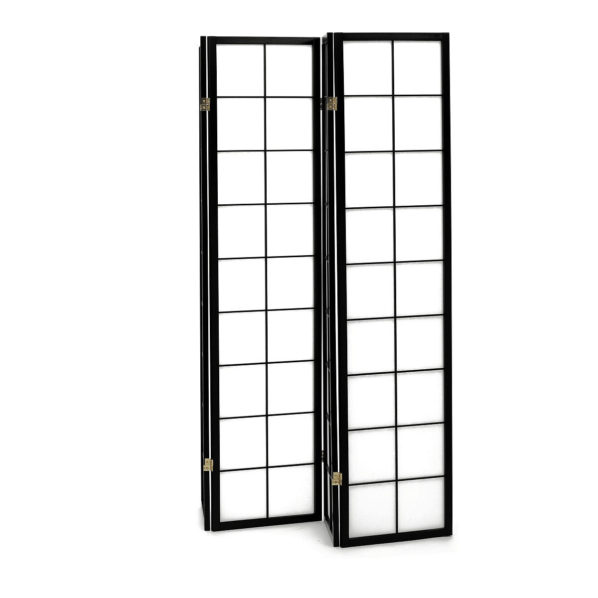 4dílný volně stojící paraván s konstrukcí z masivního smrkového dřeva v černé barvě a výplní z bílé netkané textilie. Plní nejen funkci okrasnou, ale také praktickou. Lze jej použít jako zástěnu nebo diskrétní i optickou dělící příčku nejen v bytě, ale i v komerčních prostorách. Díky skládací konstrukci a celkové nízké hmotnosti jej lze bez problémů přemísťovat a manipulovat s ním. Kombinace dřeva a netkané textilie působí vzdušným dojmem, stylově lze paraván umístit do jakkoli zařízeného interiéru. V každém si najde zasloužené místo. Výška paravánu je 178 cm, šíře jednoho dílu 43,5 cm, celková plná šíře je 176 cm. Tloušťka stěny jsou 2 cm. Stěny paravánu jsou k sobě připevněny kovovými pomosazenými panty. Celková hmotnost je 6,5 kg.