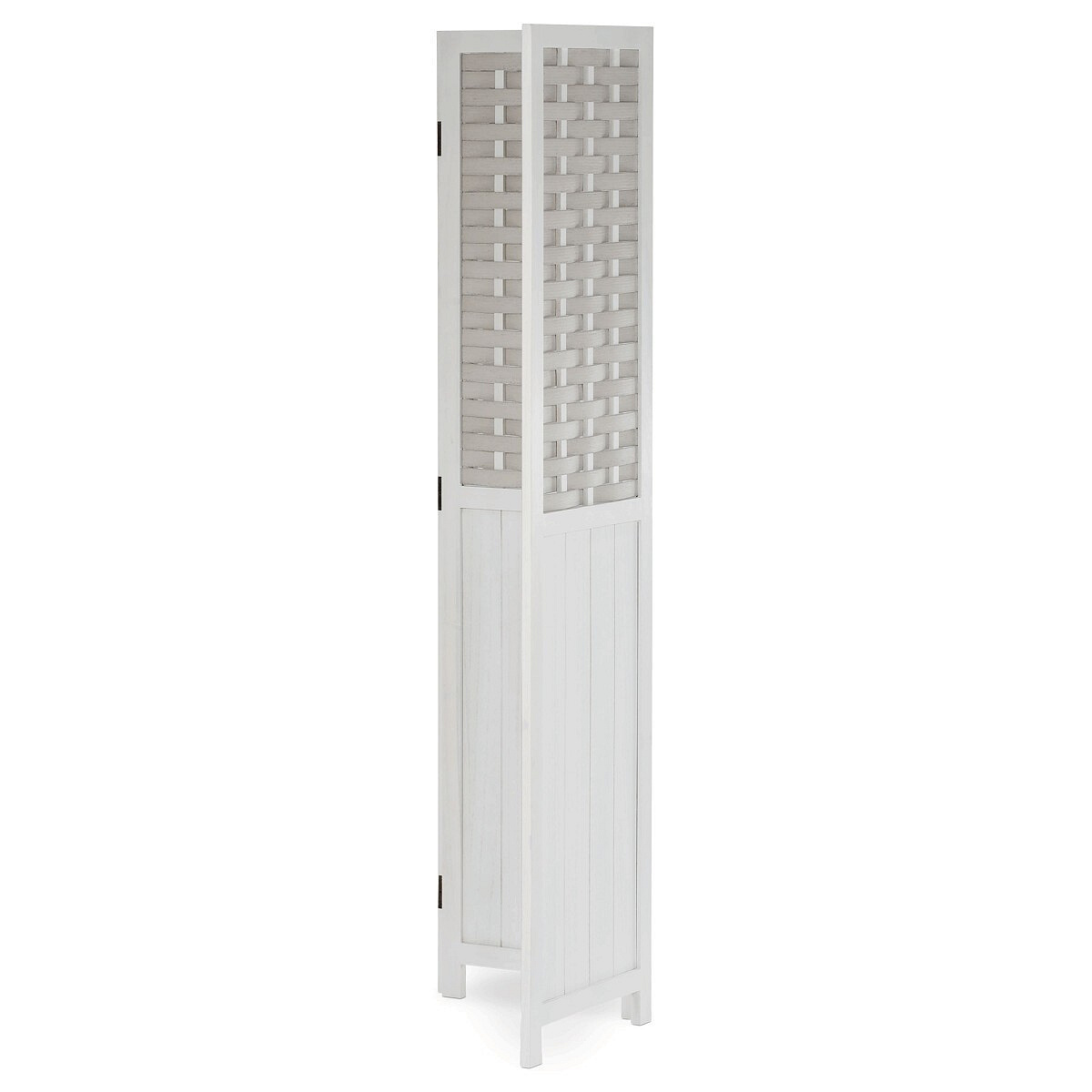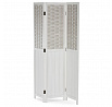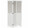 Třídílný paraván z masivního smrkového dřeva v bílé barvě nabízí praktické řešení pro rozdělení prostoru či vytvoření soukromí v interiéru. Každý díl je tvořen pevnou rámovou konstrukcí s dolní částí z masivních PVC lamel a horní částí s proplétaným vzorem, který dodává lehkost a zajímavý vizuální efekt. Díky pevním kovovým pantům lze jednotlivé díly snadno skládat a nastavit do požadovaného úhlu, což zajišťuje stabilitu a variabilitu použití. Povrchová úprava bílým nátěrem podtrhuje přírodní charakter dřeva a umožňuje snadnou údržbu. Paraván je vhodný pro použití v domácnostech i komerčních prostorách, kde oceníte kombinaci funkčnosti a decentního designu. Rozměr jednoho dílu je 40x171 cm.