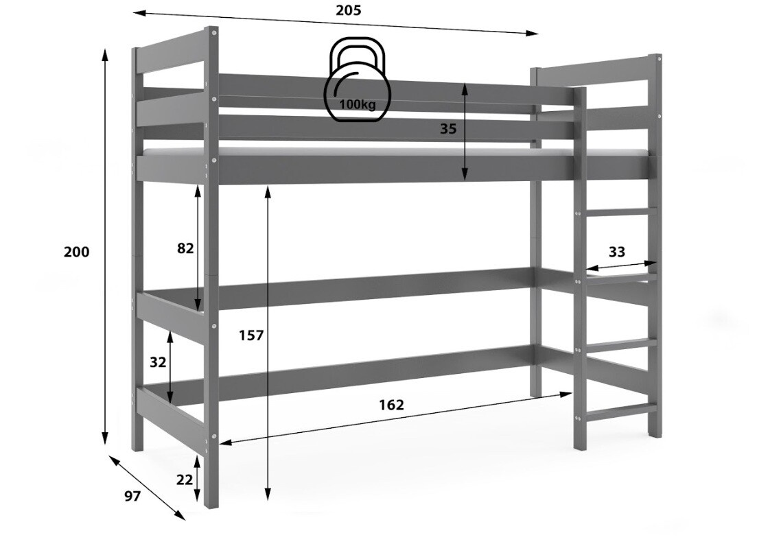 - Matrace - rozměr 160x80 (prošívaná hypoalergenní tkanina vyrobená z polyesteru + klimatizační vlákno + polyuretanová pěna + zip)