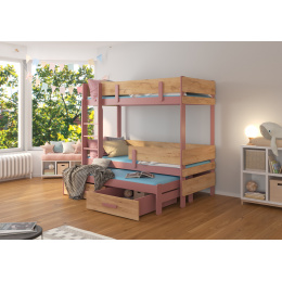 Třílůžková patrová postel ETAPO 180x80 Růžová+Dub Zlatý