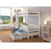 Patrová 3lůžková postel ETAPO je skvělý nápad na úsporu místa v malém dětském pokoji. Nábytek obsahuje schůdkový žebřík a dvě prostorné a funkční zásuvky na ložní prádlo. Navíc na dvou úrovních byly namontovány zábradlí zvyšující bezpečnost během spánku. Matrace není součástí postele.