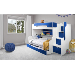 Součástí postele jsou rošty. K posteli lze přikoupit pěnovou matraci o rozměru 90x200x8 cm a pružinovou matraci 120x200x15 cm. Schody jsou univerzální - lze je umístit na na obě strany.