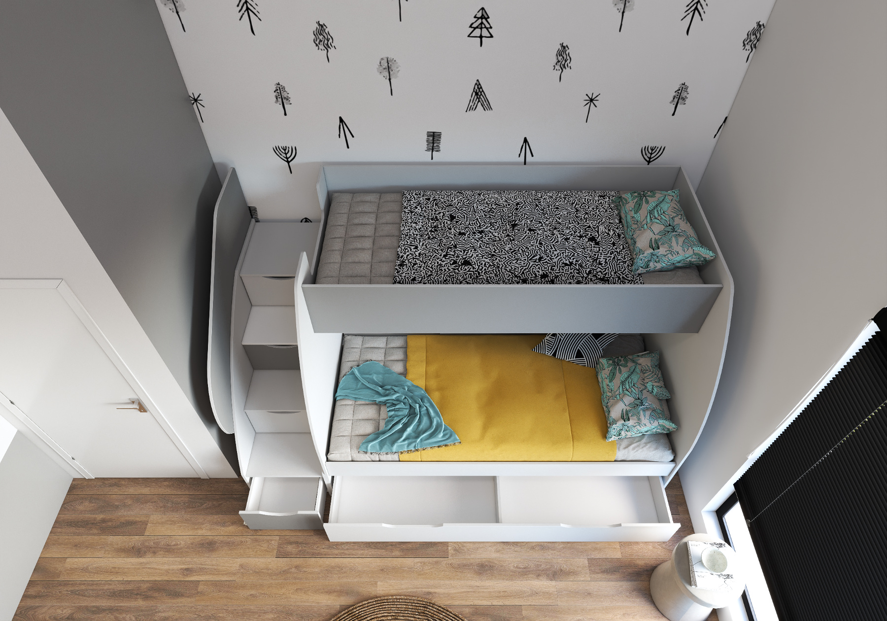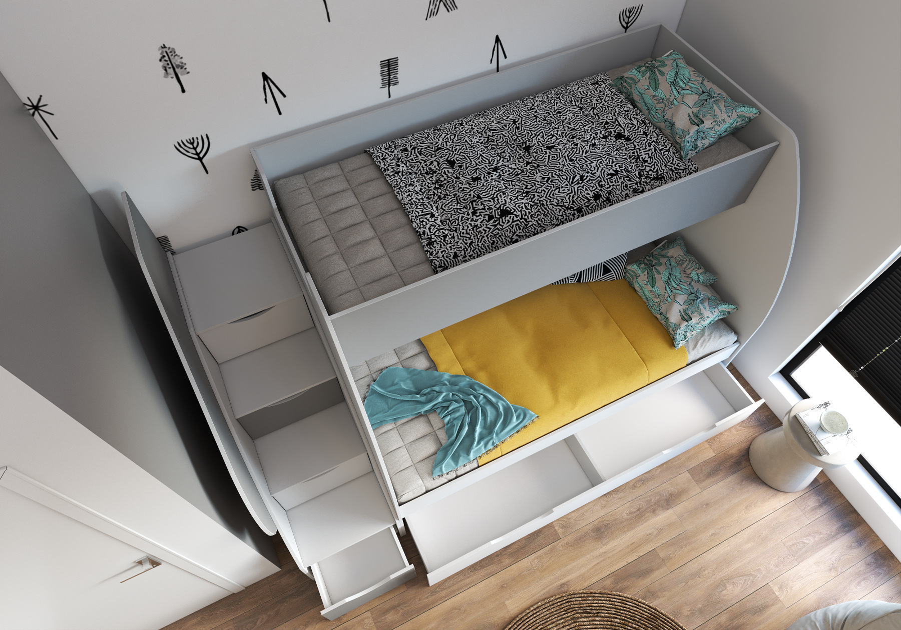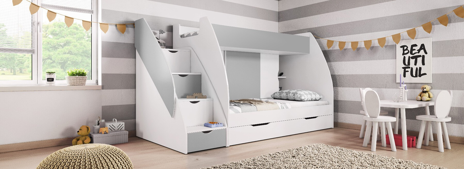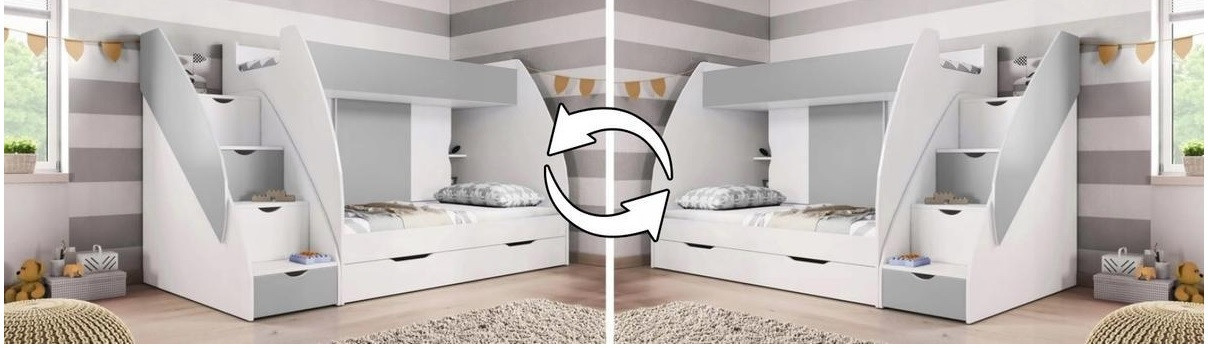 - Universální strana postele - Schody je možné sestavit na pravou nebo levou stranu