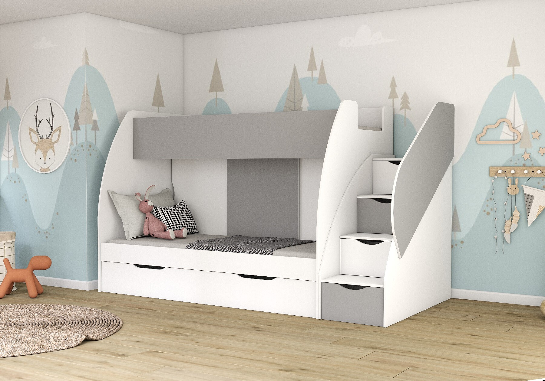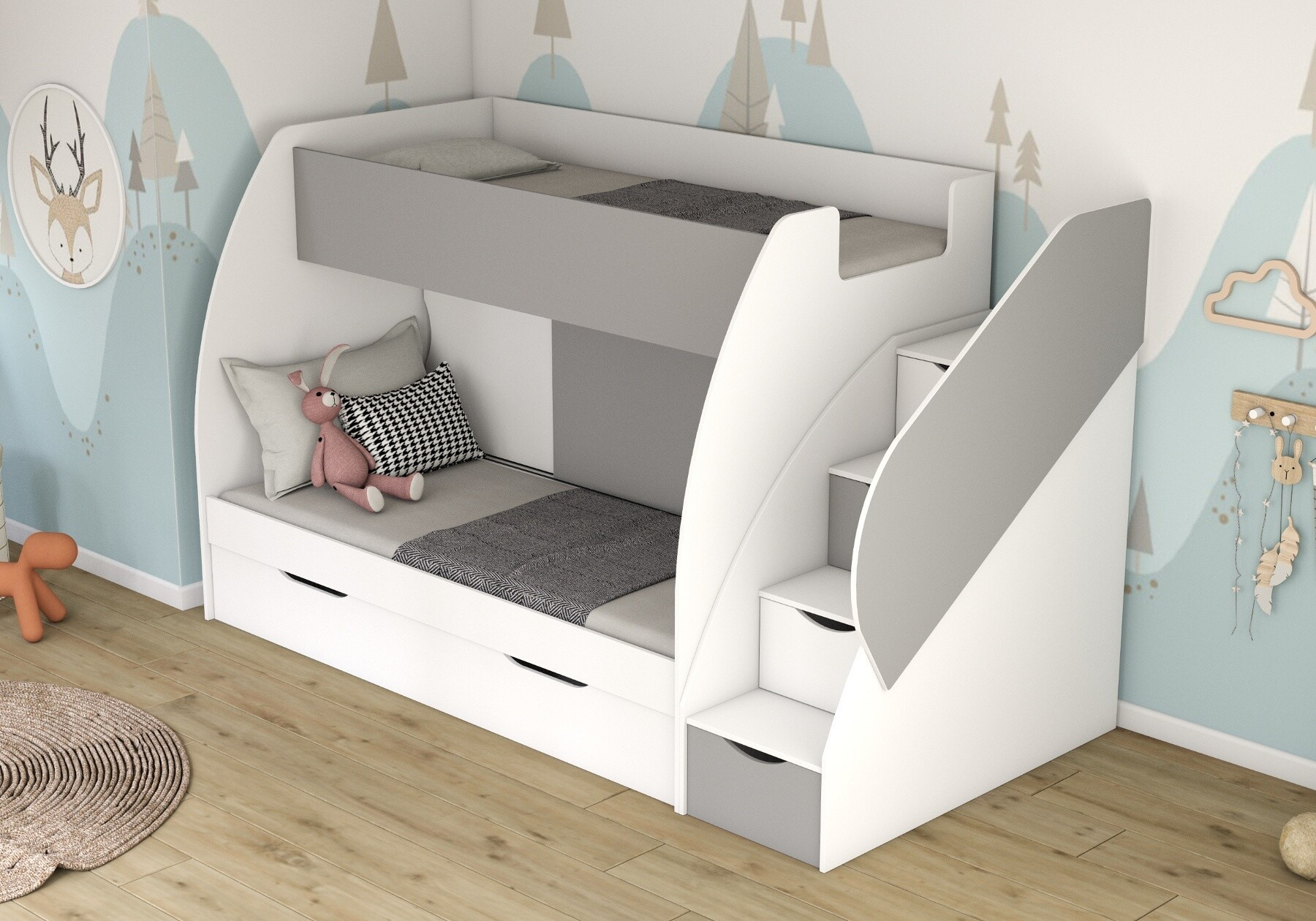 Patrová postel MARTINEK, Bílá/Šedá