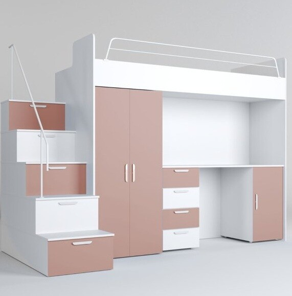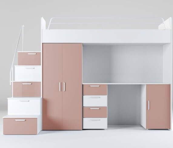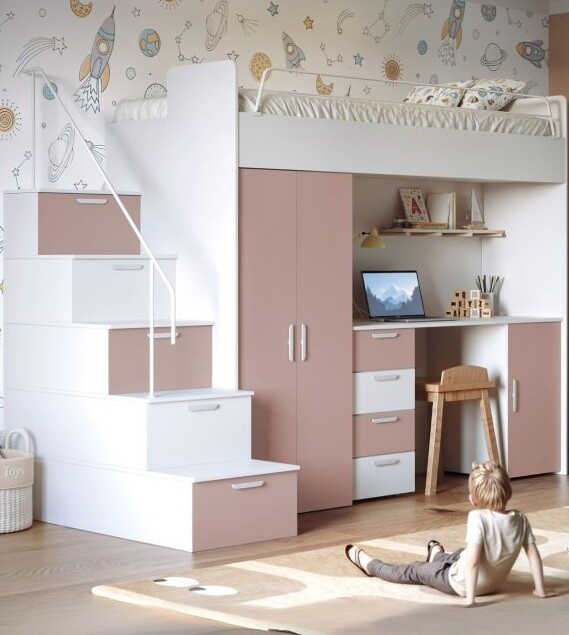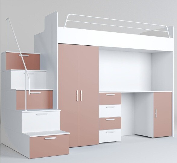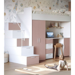 Patrová postel PARADISE 4S Bílá Starorůžová mat