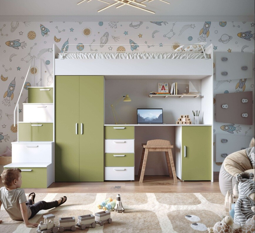 Patrová postel PARADISE 4S Bílá Zelená Oliva mat