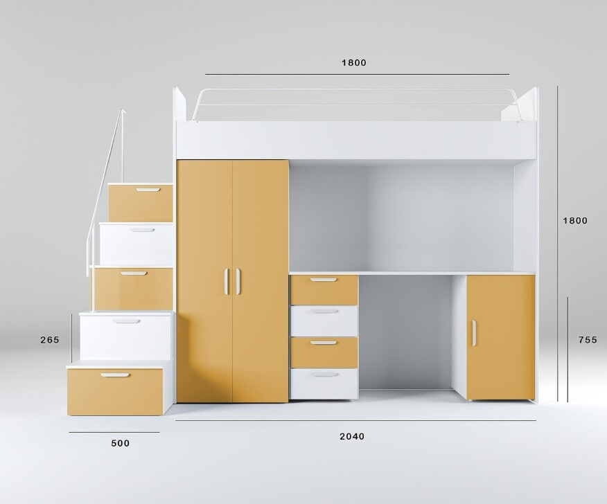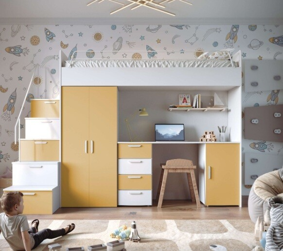 Patrová postel PARADISE 4S Bílá Žlutá Curry mat