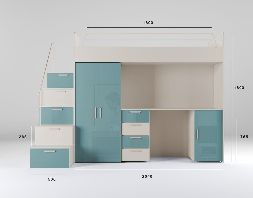 Celkové rozměry postele jsou 86 cm na šířku, 180 cm na výšku a 254 cm na délku. Tyto rozměry zajišťují, že postel poskytuje dostatek prostoru pro pohodlný spánek, zatímco její patrová konstrukce šetří místo v pokoji. Je ideální volbou pro menší pokoje, kde je potřeba efektivně využít každý centimetr.