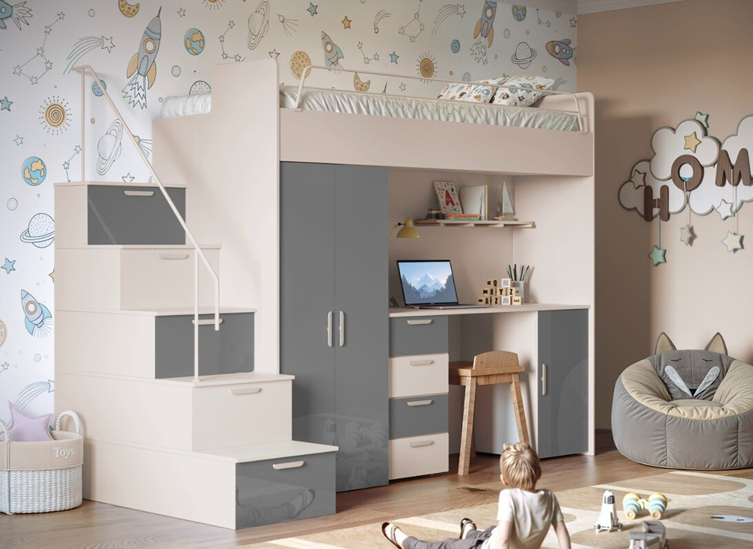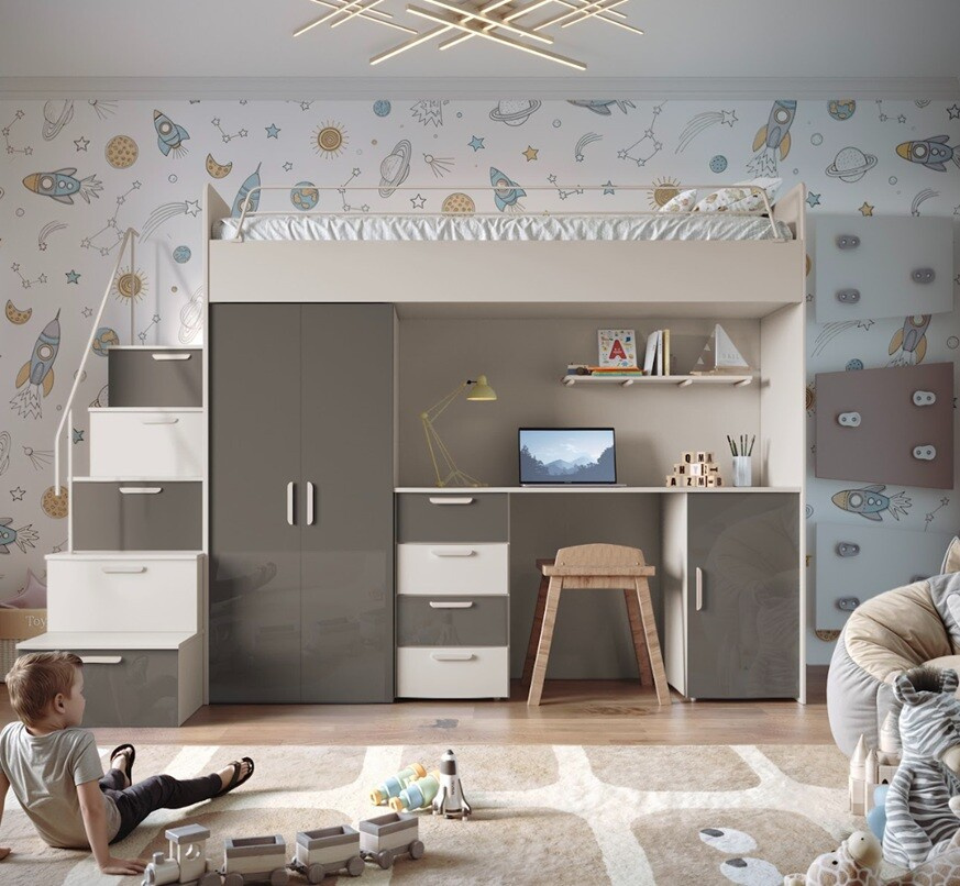 Patrová postel PARADISE 4S Kašmír + Lesk je skvělou volbou pro každého, kdo hledá stylové a praktické řešení pro dětský pokoj. Její moderní design, kvalitní materiály a praktické vlastnosti z ní činí ideální investici do pohodlí a estetiky vašeho domova.