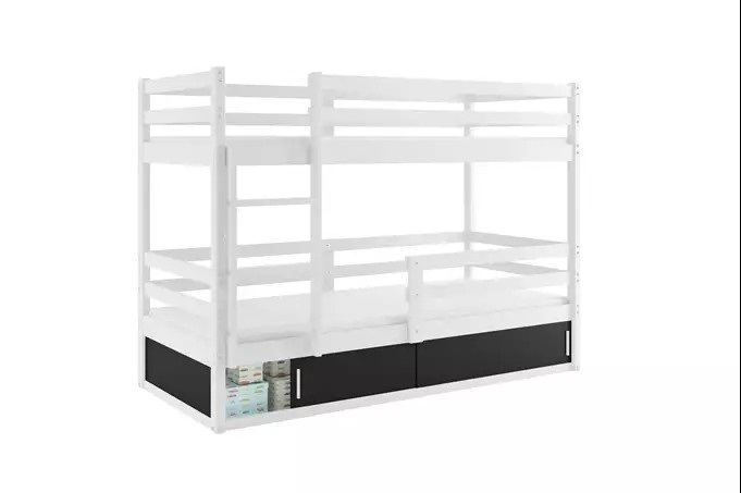 Łóżko młodzieżowe, piętrowe Bingo, z białą ramą, z materacami 80 x 190