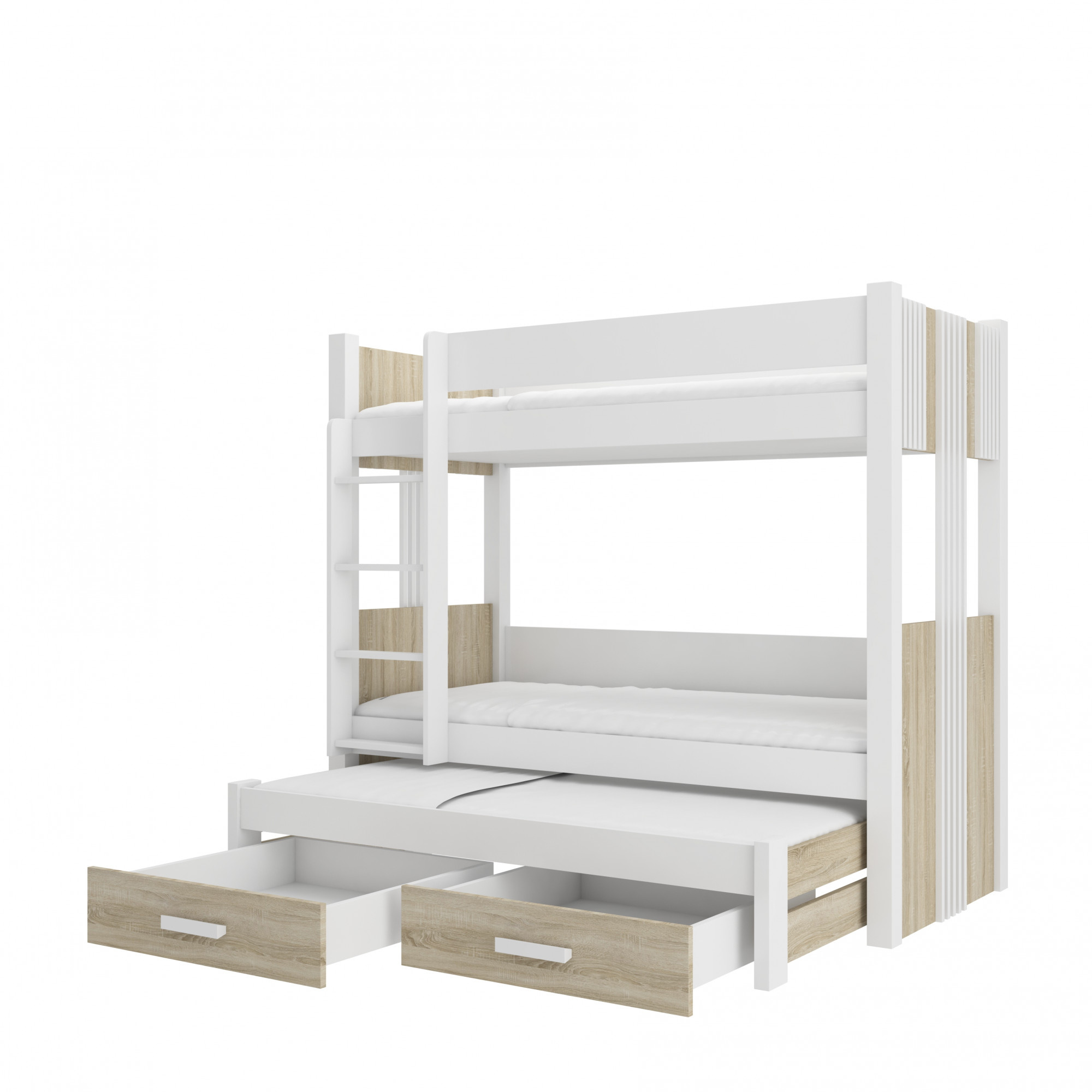 Třílůžková patrová postel s matracemi ARTEMA 180x80 Bílá+Sonoma