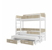 Třílůžková patrová postel s matracemi QUEEN 180x80 Bílá+Sonoma