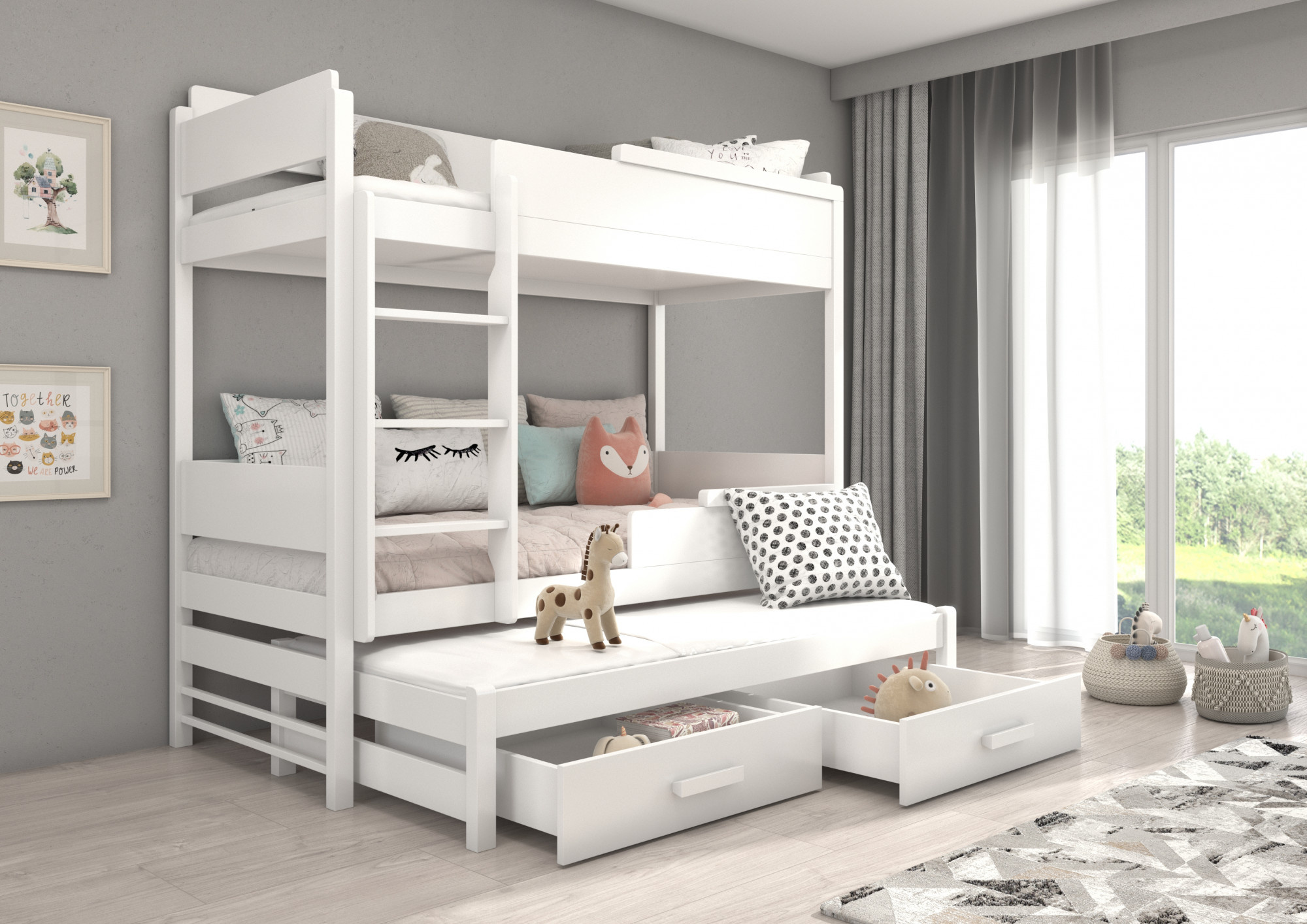 Třílůžková patrová postel QUEEN 200x90 Bílá+Bílá