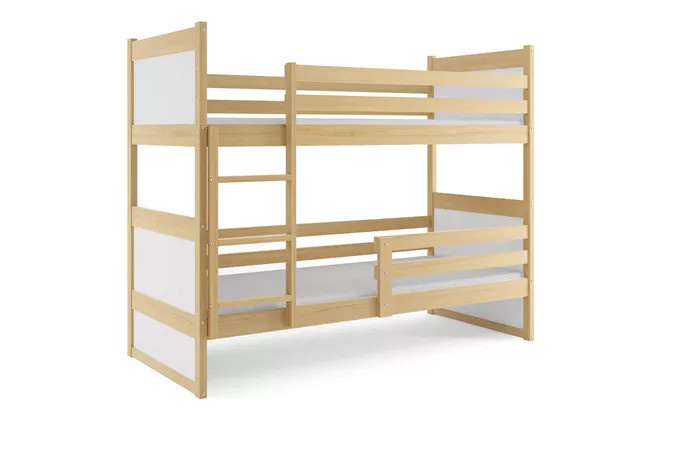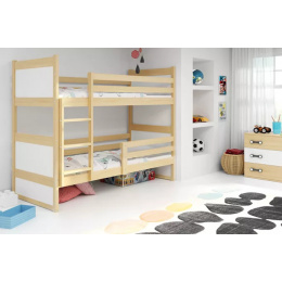 Dětská patrová postel RICO 90x200 cm, včetně matrací, Přírodní/Bílá