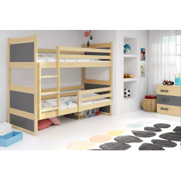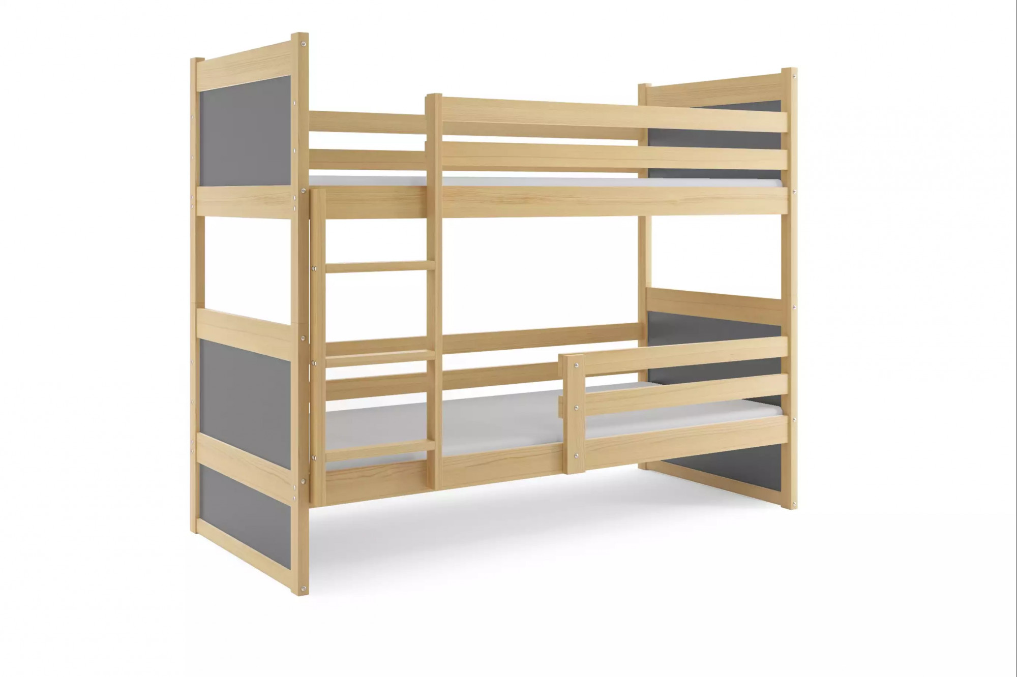 Dětská patrová postel RICO 90x200 cm, bez matrace, Přírodní/Grafit