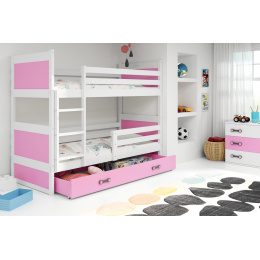 Dětská patrová postel Riky je určena pro ty, kteří pro své dítě hledají funkčnost, moderní design a kvalitu. Postel je vyrobena z borovicového dřeva v kombinaci s MDF deskou (barevné panely na bocích postele). Její stabilní konstrukce, zaoblené hrany a zábrana na horní i dolní posteli, zajišťují bezpečnost a pohodlí dítěte. Žebřík si můžete podle potřeby umístit na pravou, nebo levou stranu postele. Když děti patrová postel omrzí, je možno palandu rozložit na dvě samostatné postele. Součástí postele je 2x zábrana, praktický úložný prostor na kolečkách, 2x rošt a 2x pěnová matrace s doporučenou nosností do 70 kg. Tloušťka matrace je 7cm. Plocha pro spaní je 2x 90x200 cm. Postel je dodávána v demontu a součástí je montážní plánek včetně všech potřebných spojovacích materiálů. Vyobrazené dekorace nejsou v ceně. Zobrazení barev na fotografii se může od skutečnosti nepatrně lišit.