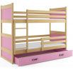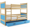 Dětská patrová postel Riky je určena pro ty, kteří pro své dítě hledají funkčnost, moderní design a kvalitu. Postel je vyrobena z borovicového dřeva v kombinaci s MDF deskou (barevné panely na bocích postele). Její stabilní konstrukce, zaoblené hrany a zábrana na horní i dolní posteli, zajišťují bezpečnost a pohodlí dítěte. Žebřík si můžete podle potřeby umístit na pravou, nebo levou stranu postele. Když děti patrová postel omrzí, je možno palandu rozložit na dvě samostatné postele. Součástí postele je 2x zábrana, praktický úložný prostor na kolečkách, 2x rošt a 2x pěnová matrace s doporučenou nosností do 70 kg. Tloušťka matrace je 7cm. Plocha pro spaní je 2x 90x200 cm. Postel je dodávána v demontu a součástí je montážní plánek včetně všech potřebných spojovacích materiálů. Vyobrazené dekorace nejsou v ceně. Zobrazení barev na fotografii se může od skutečnosti nepatrně lišit.