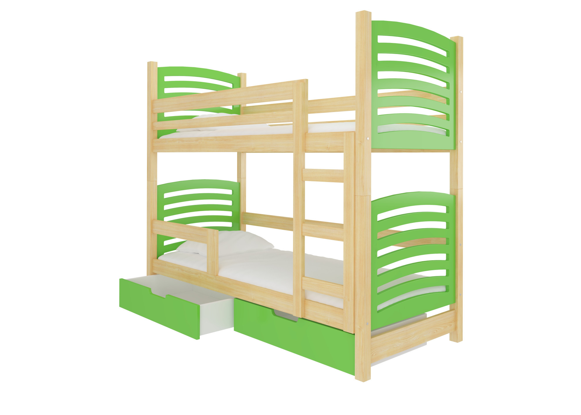 Dvoulůžková patrová postel s matracemi OSUNA Pine+Green