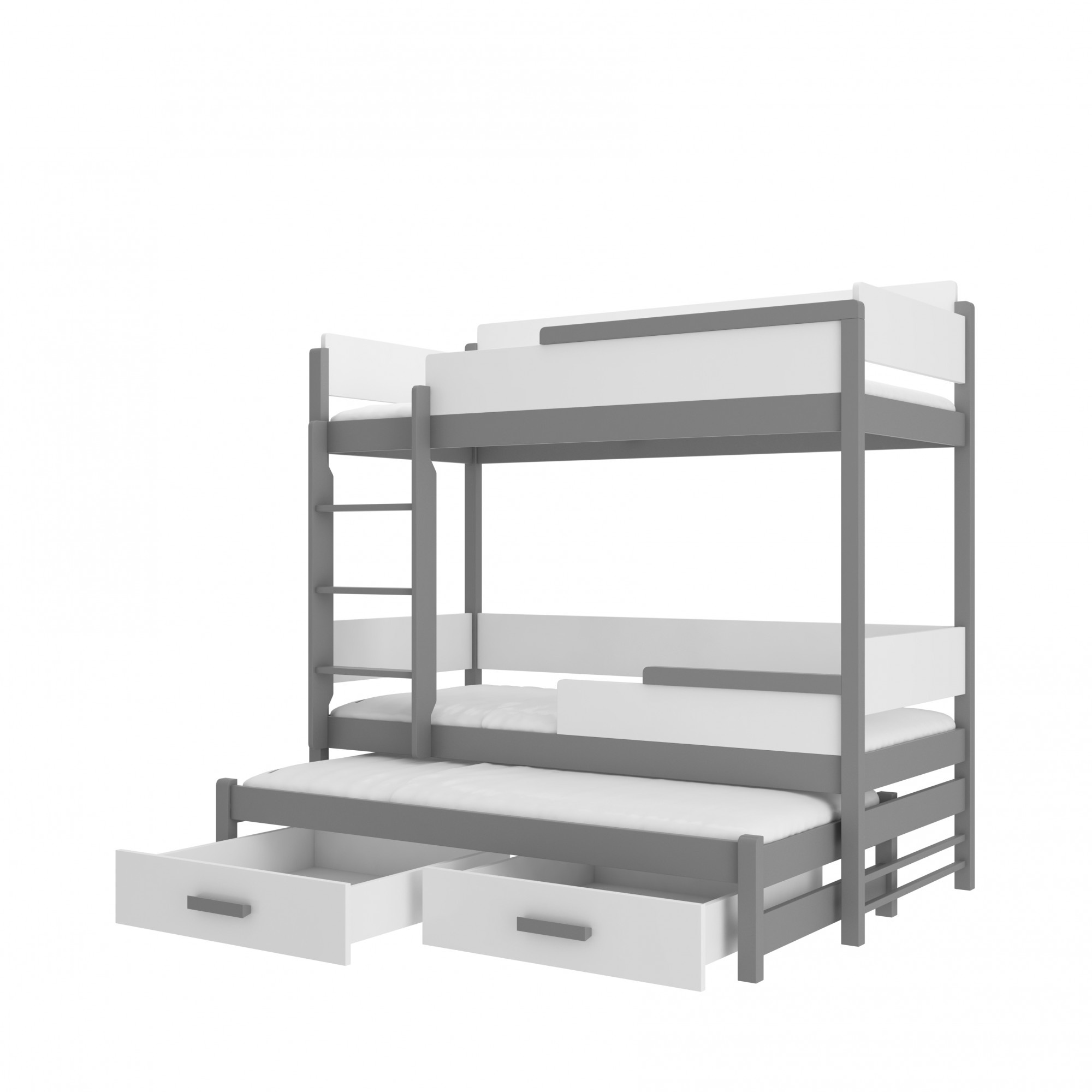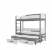 Třílůžková patrová postel s matracemi QUEEN 180x80 Grafit+Bílá